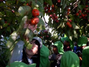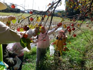 一生懸命「自分で」柿をとって嬉しそうな子どもたち。