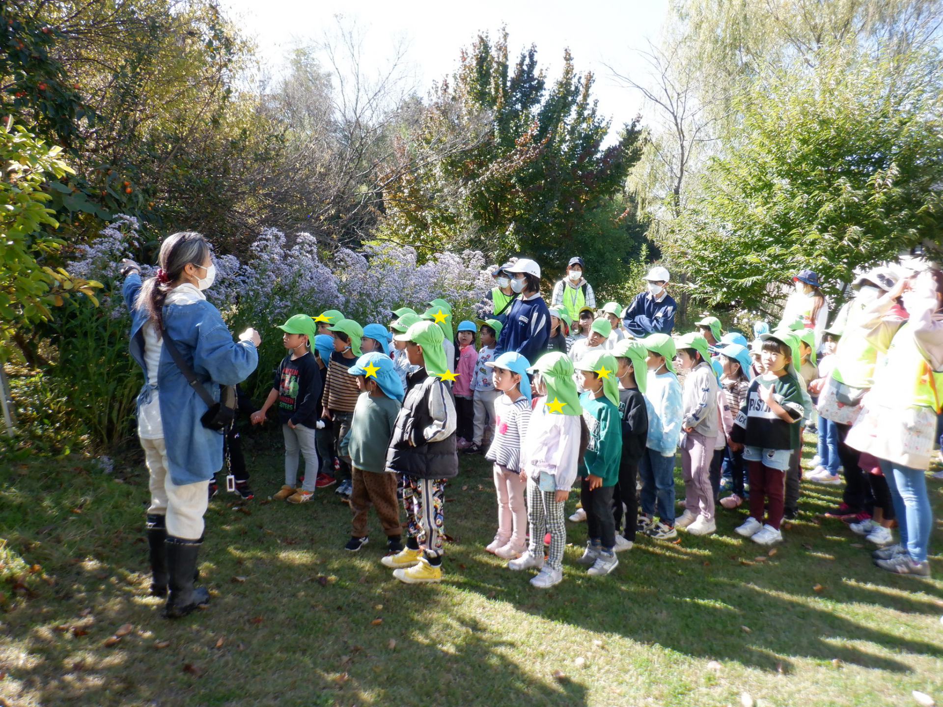 今まで何度も通った道だけれど 青空を見上げると 大きな木が立っていることにも気づいて いつもよりワクワクしている子どもたち。