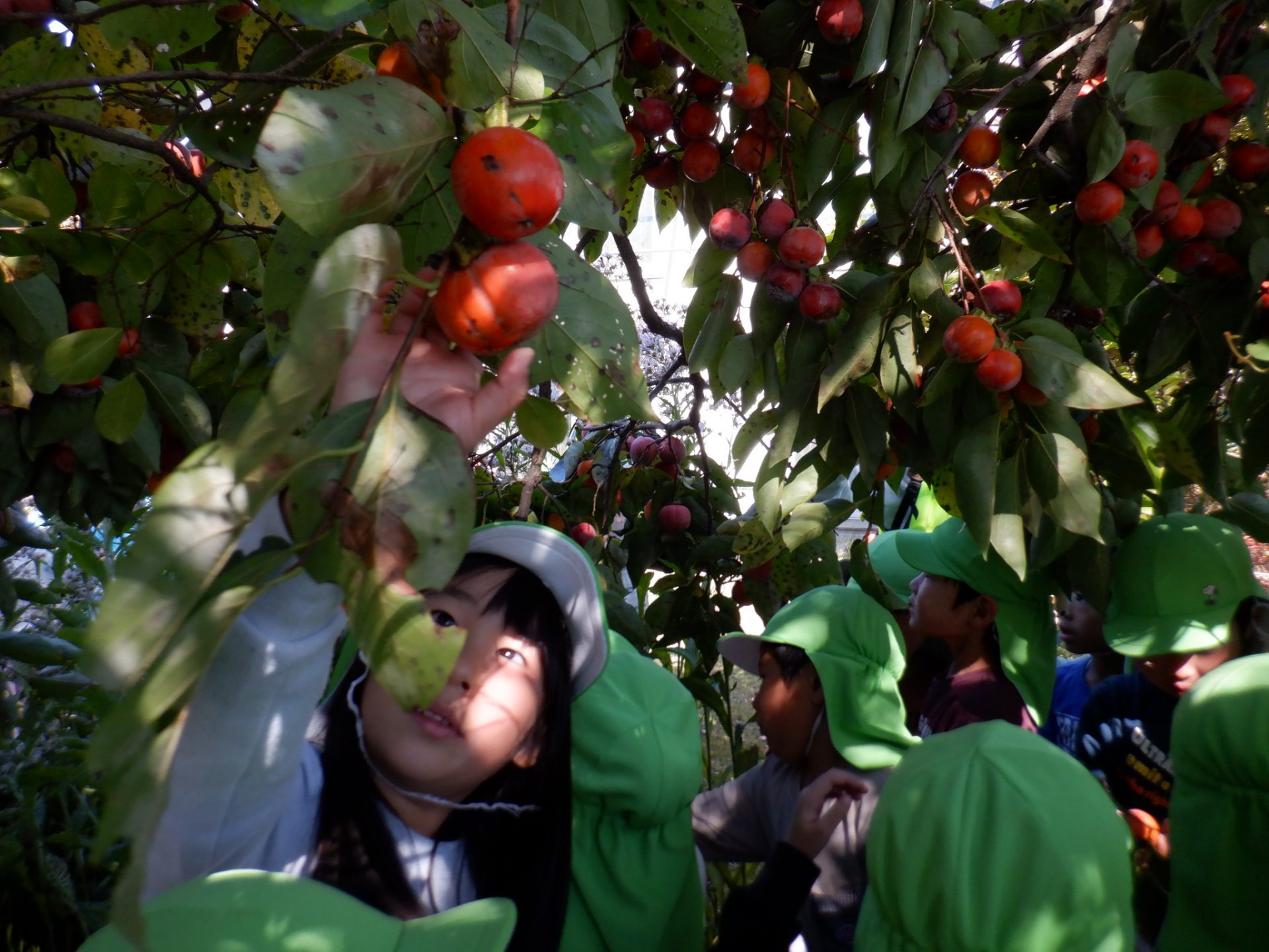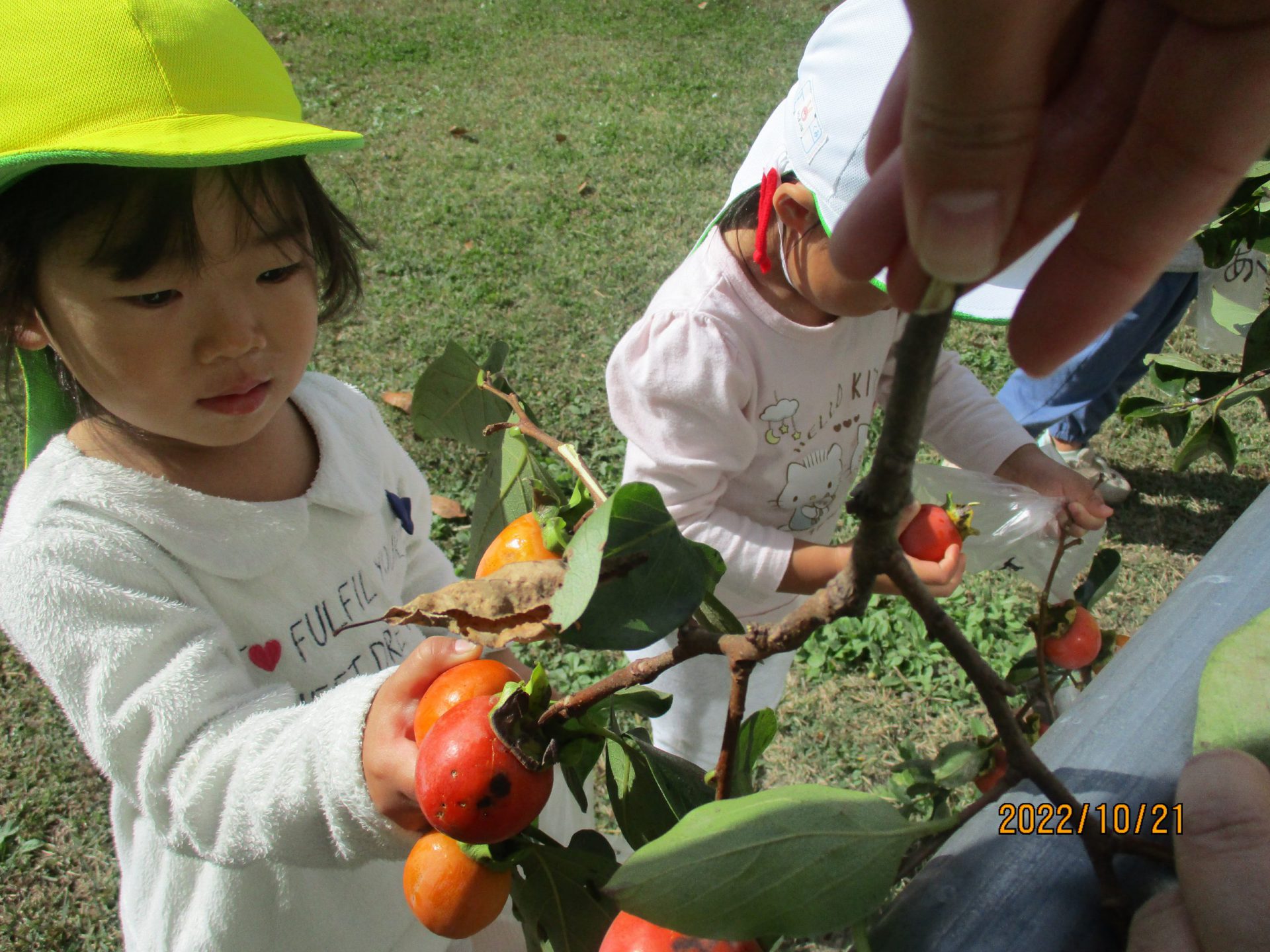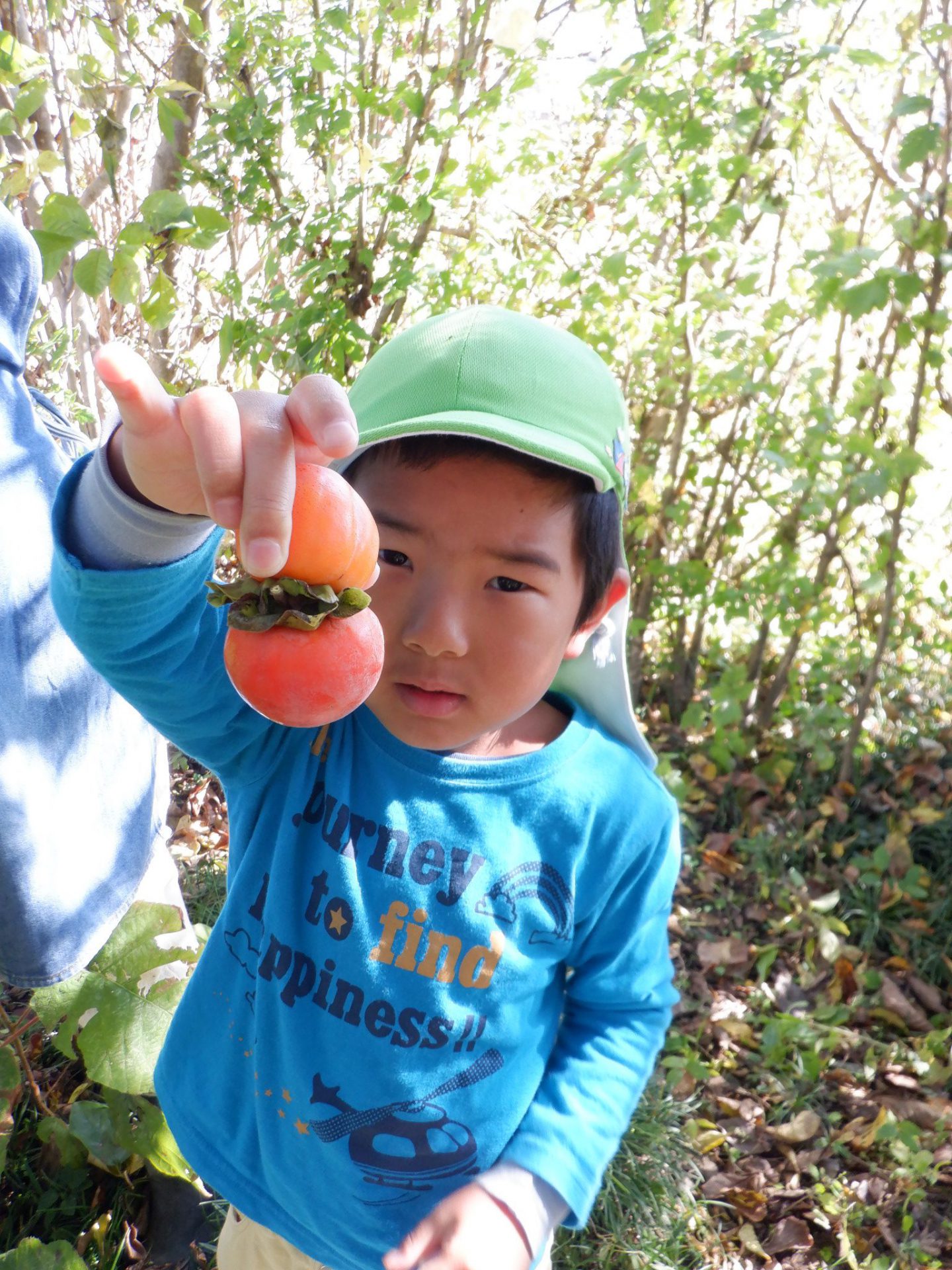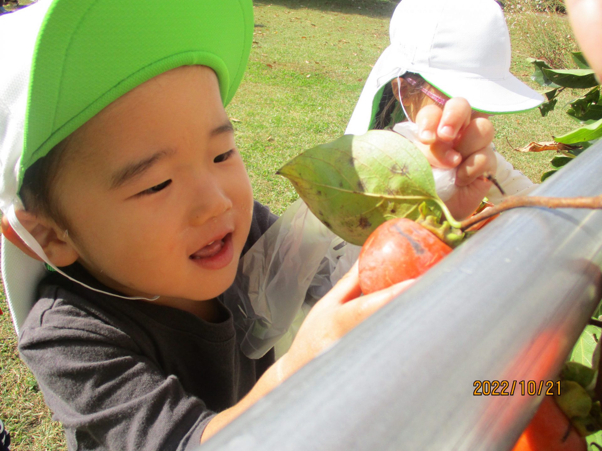 「初めて自分で柿をとったよ〜。」としみじみ柿を見つめる子もいました。