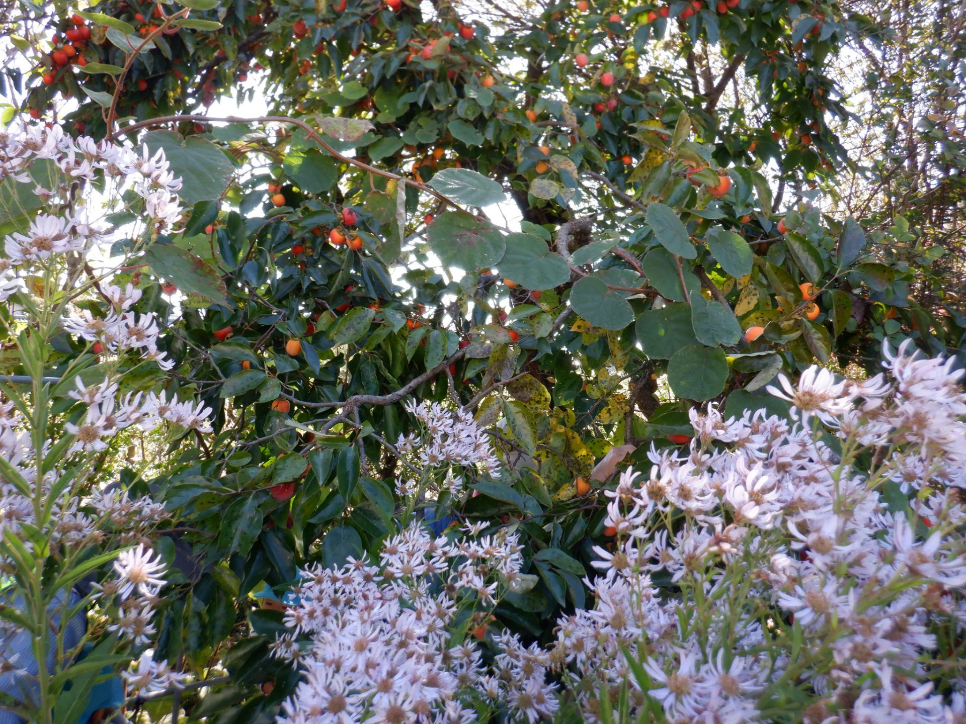 秋の実り・・・今まで散歩の途中に柿の木を見ることはあっても、木の高いところになっていて下から子どもたちと眺めるだけでした。