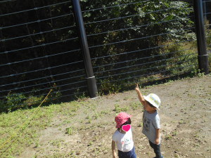 「あ!何かある!!」と、裏山を指さす子どもたち。