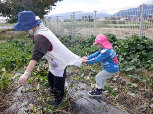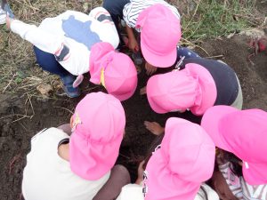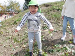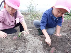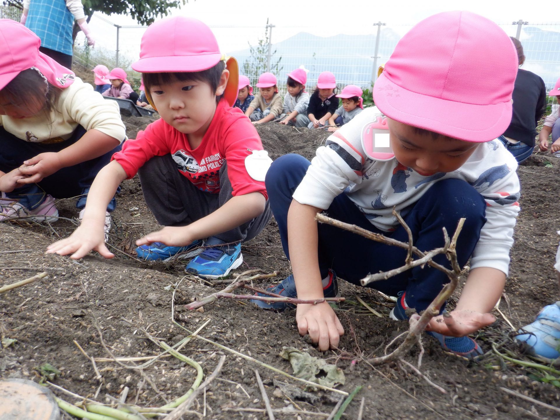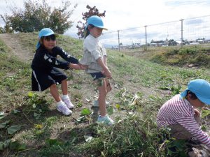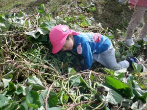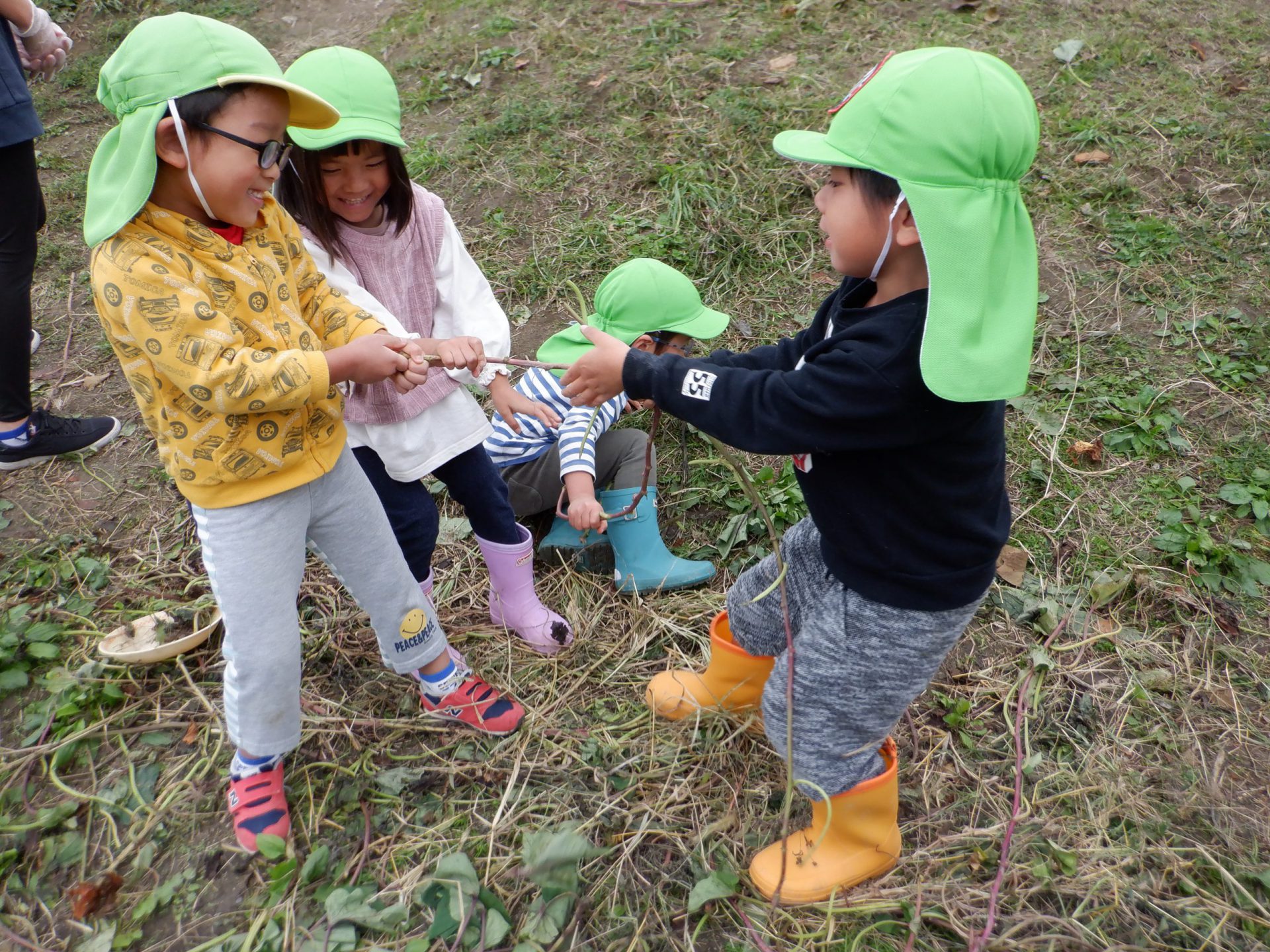 次は焼きいも会に向けて、さつまいもにお日様の光を当てて甘~くなるようにしたり、木の枝や落ち葉を集めたりしながら、準備をしていきたいと思います。