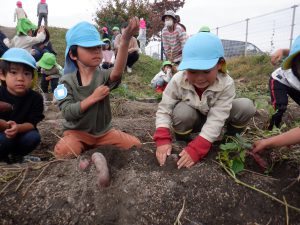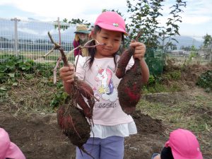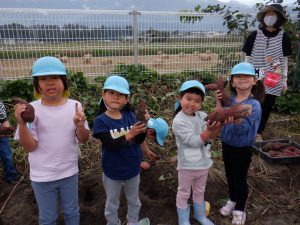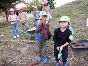 色んな形、色んな大きさのさつまいもを、みんなで力を合わせて収穫することができました。