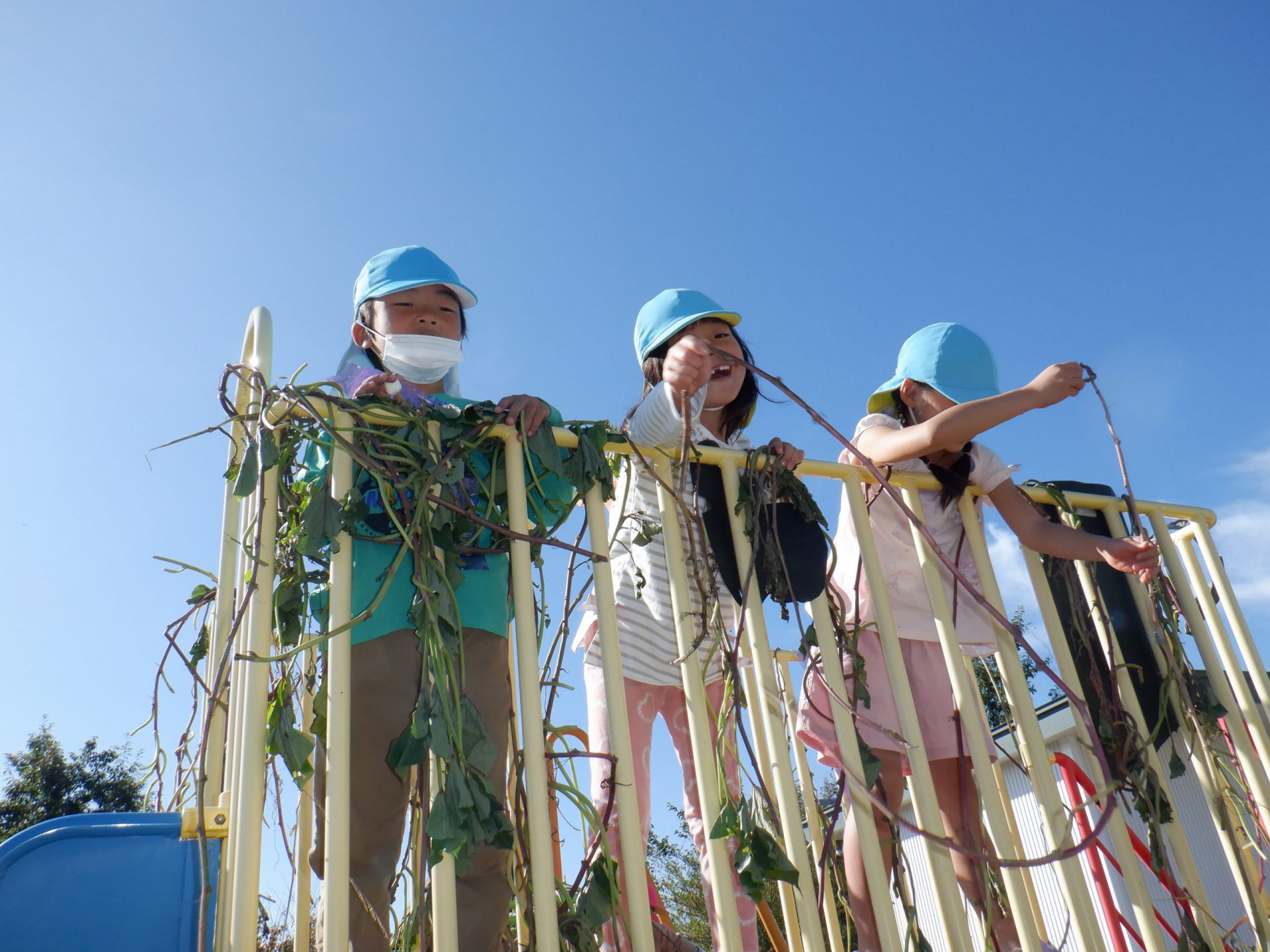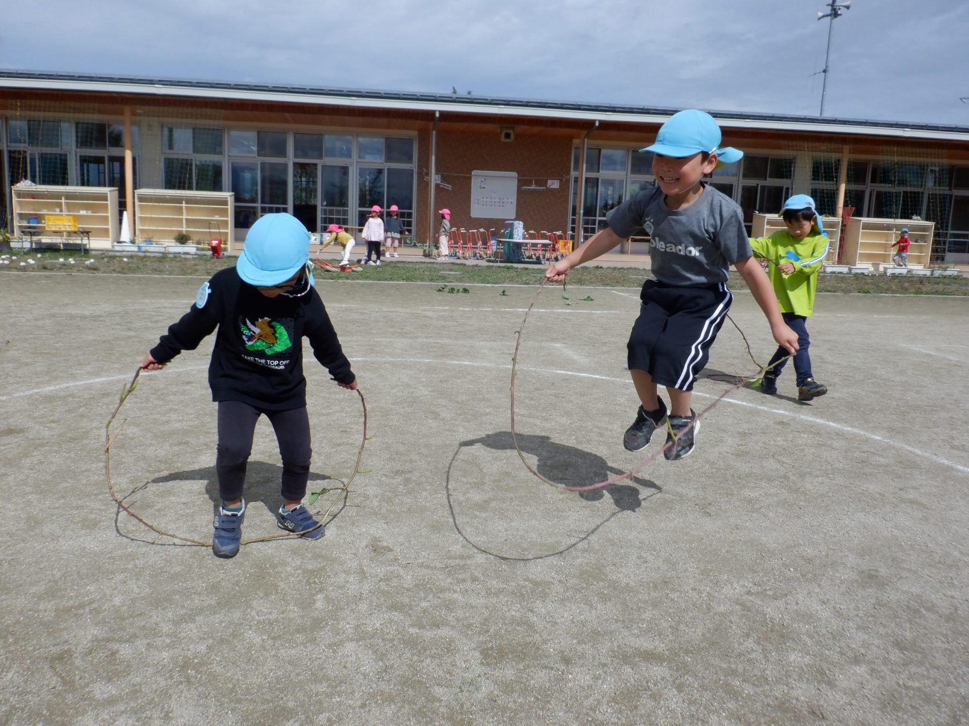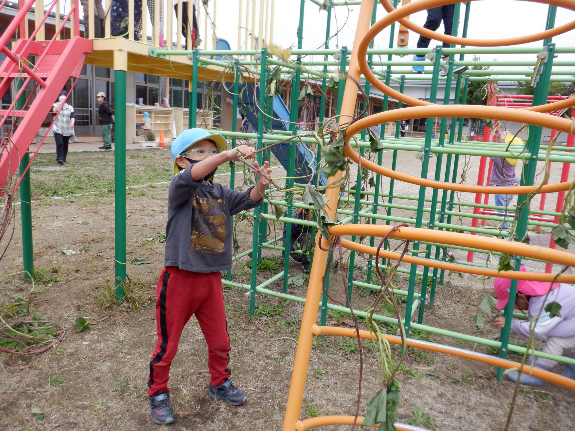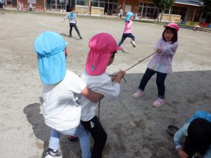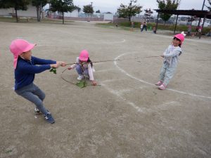 さつまいものつるで、縄跳びや綱引き、お化け屋敷ごっこ!?など、子どもたちの楽しい発想にはいつもびっくりさせられます。