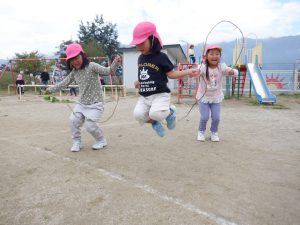 縄跳びにもなって、ぴょんぴょん跳んで楽しみます。