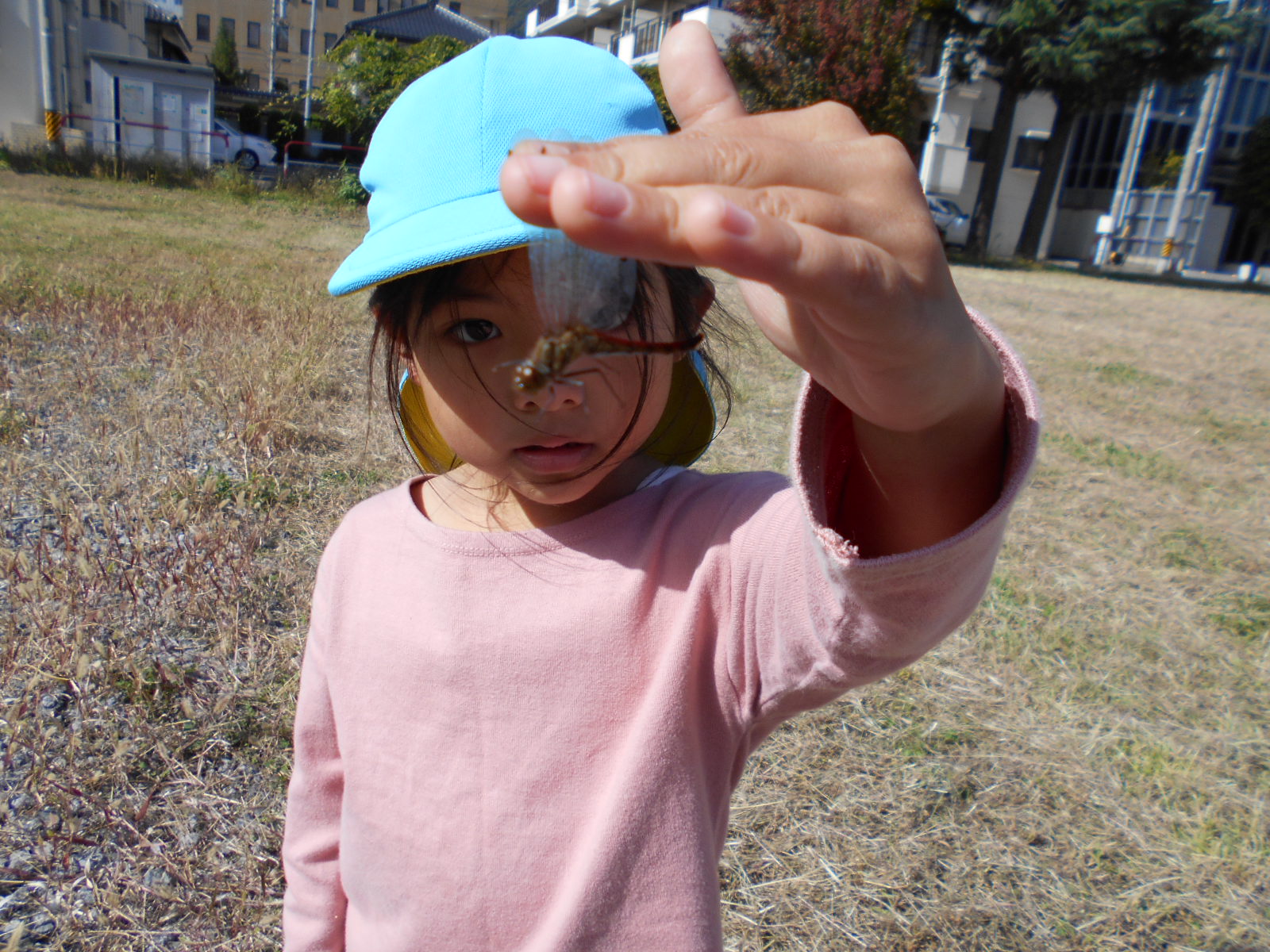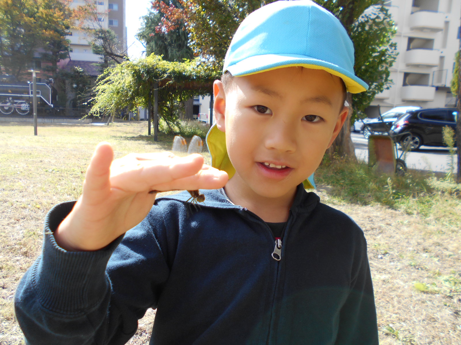 自分の力で捕まえる事が出来た子ども達の笑顔がキラキラ輝き、とても満足気なのを見て、保育士も嬉しくなりました。
