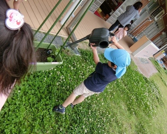 戸外あそびに園庭に出るたびに先生と一緒に水やりをしていました。そんなある日・・・