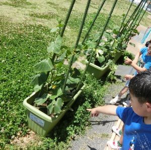 早速何の野菜を育てるかクラスで話し合い、じゃがいも、トマト、なす等の意見が出ましたが、多数決の結果きゅうりを育てることに決まりました。