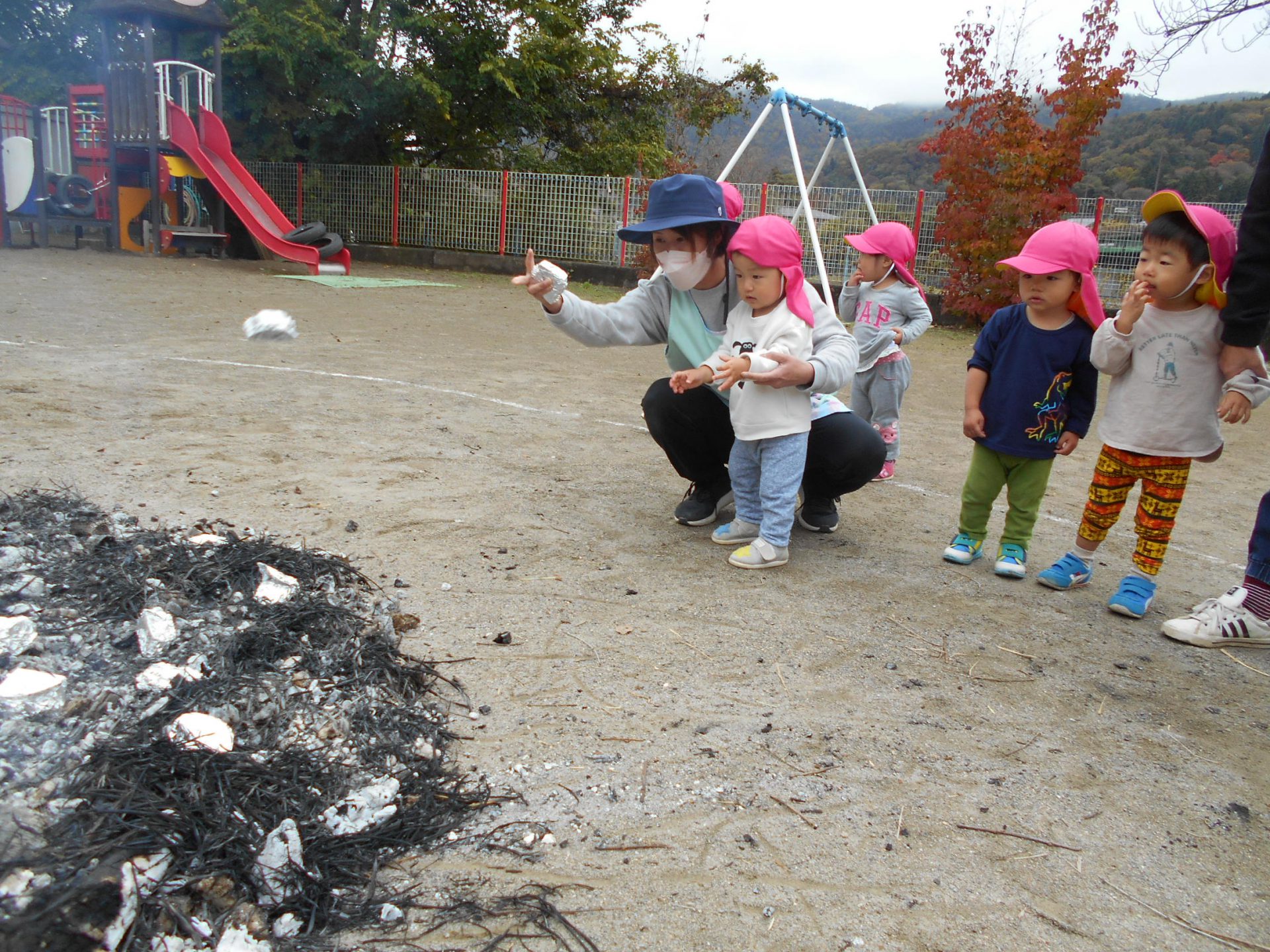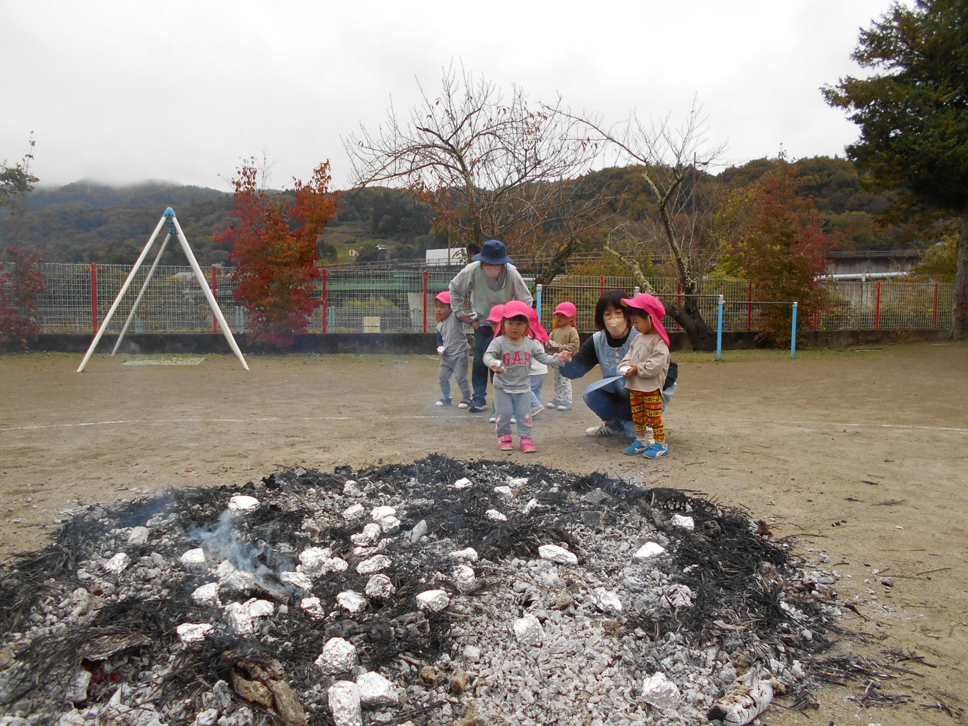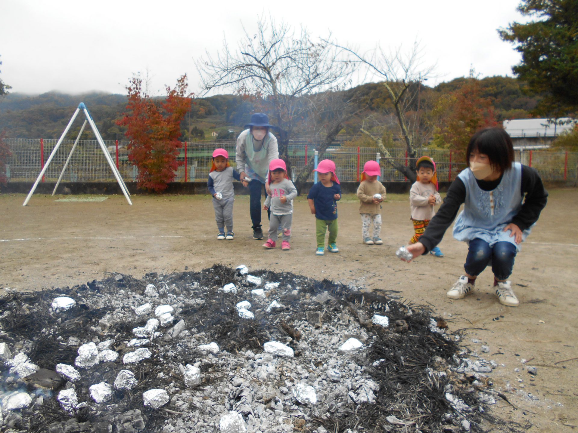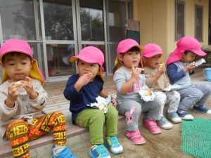幼児組のお兄さんお姉さんが育ててくれた芋でのやきいも会!!