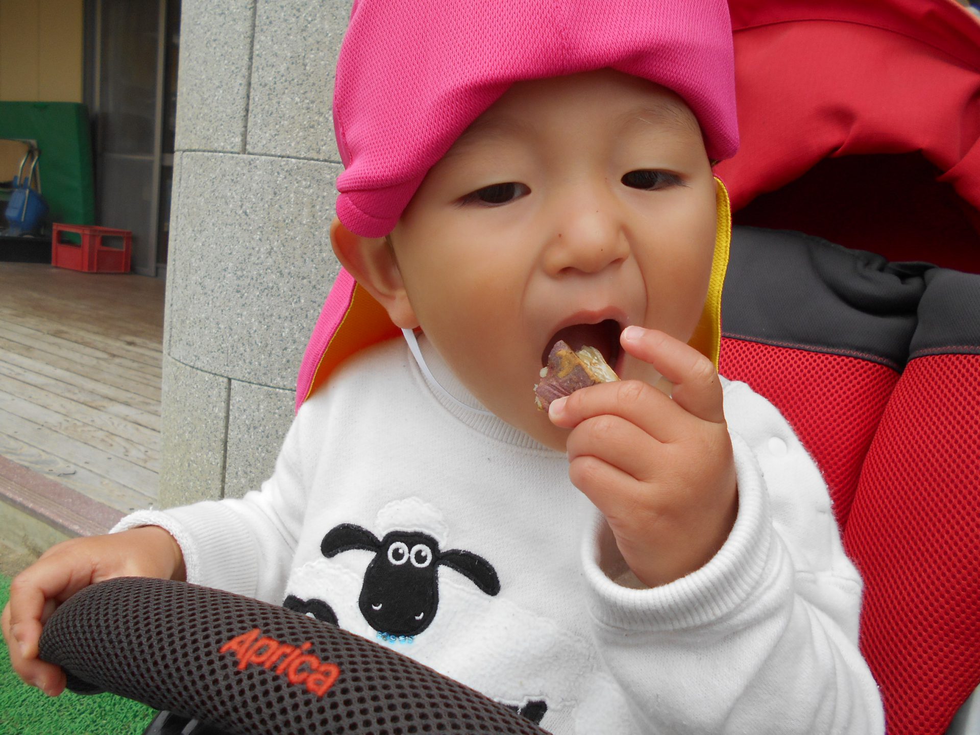 お散歩から帰ると、、、ホクホクとろーりのやきいもの出来上がり!!