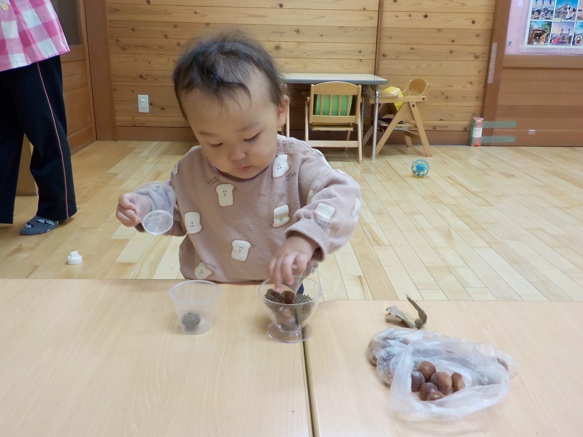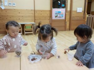 木の実に興味を持って、手にとって感触を楽しんで欲しいと思います。