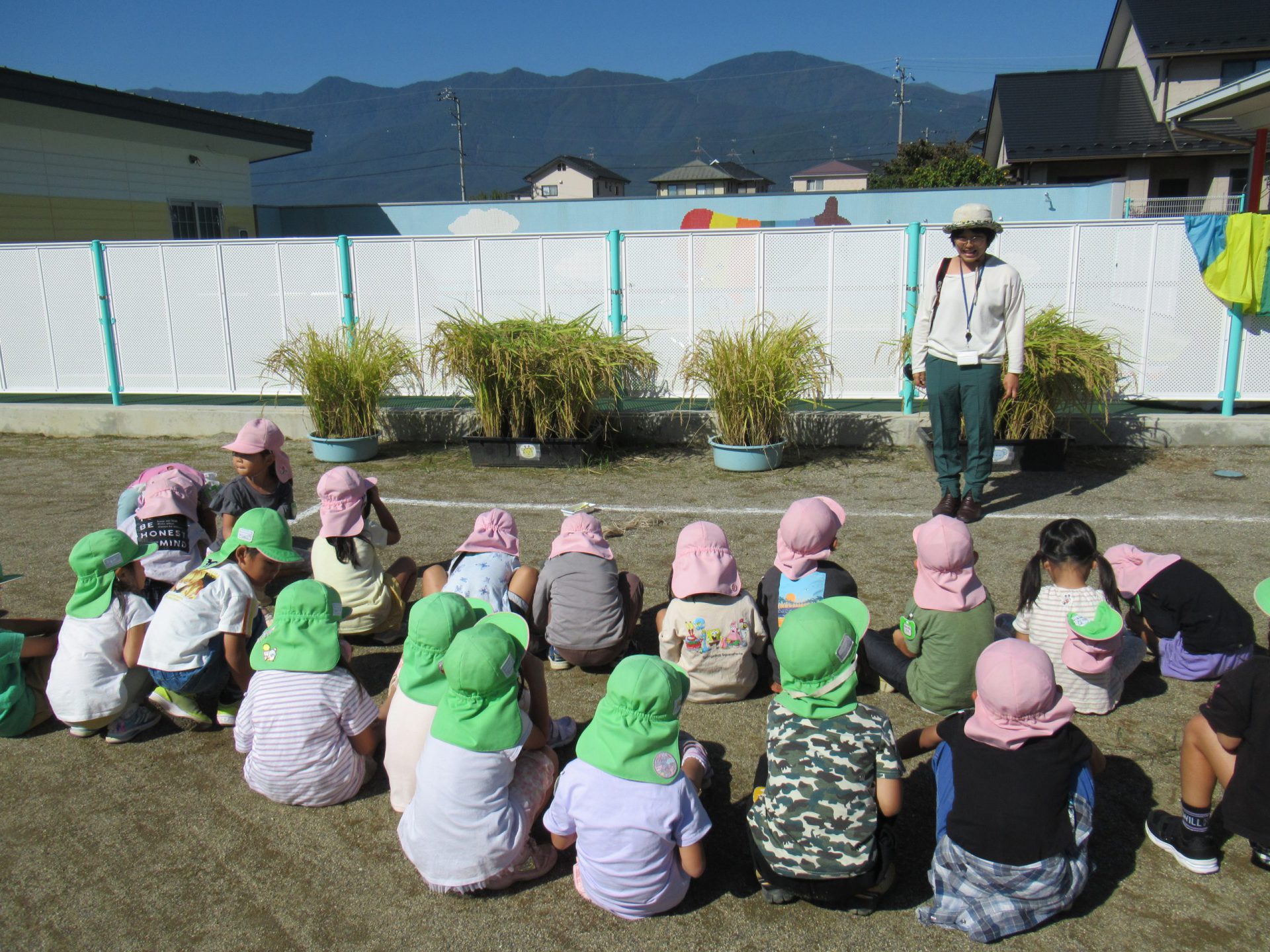 毎日食べている身近な食べ物であるお米を育てる上で、子どもたちなりに食への関心や食べ物の大切さを感じ取ってくれるとうれしいなぁと思いながら、職員もお米を育てることの大変さ、農家の方々への感謝、を改めて実感しました。