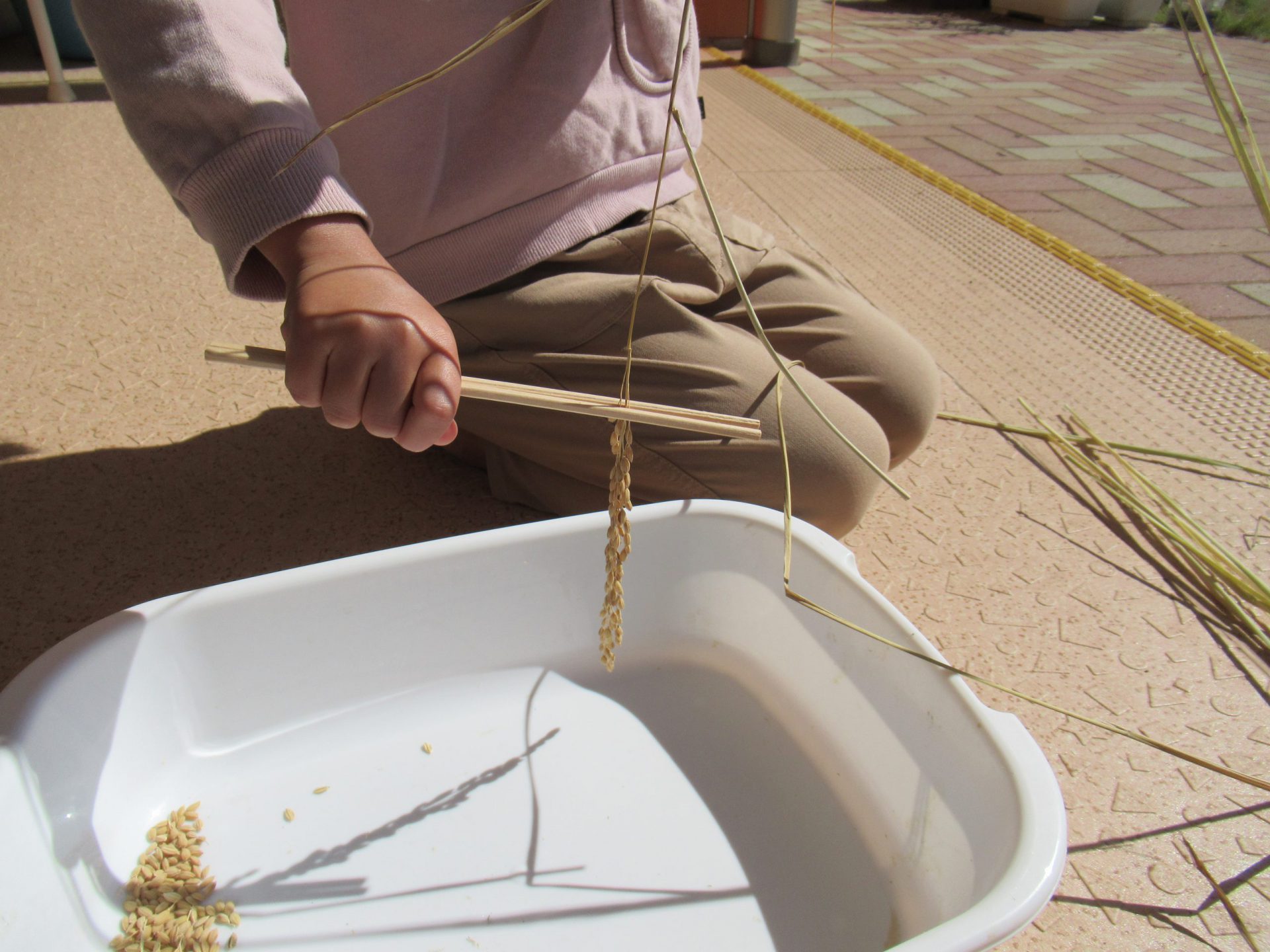脱穀 割り箸を使ってみたけれどなかなかうまくいきません。