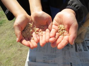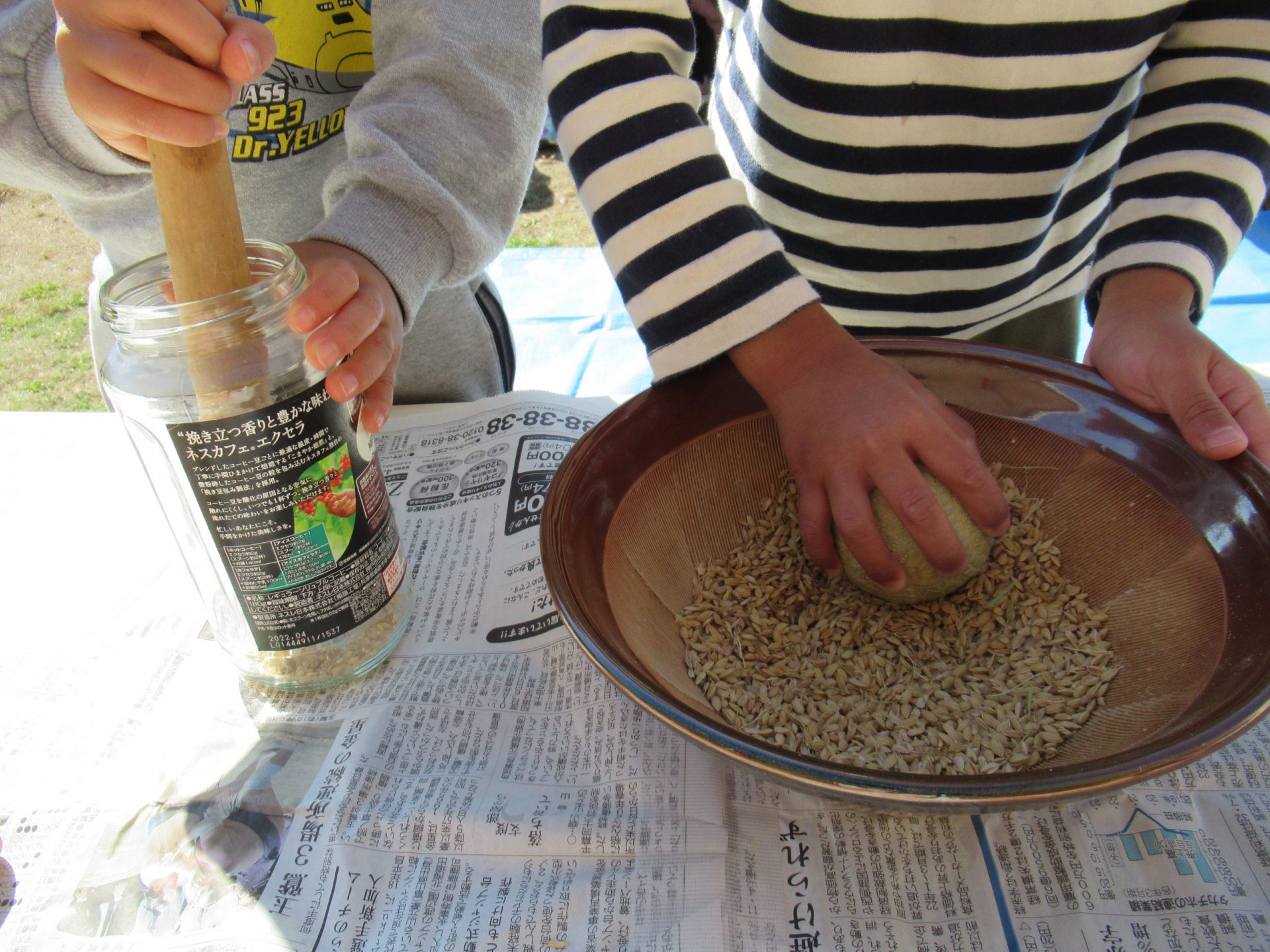すり鉢と野球のボールでもみがきれいにとれてきました。