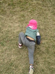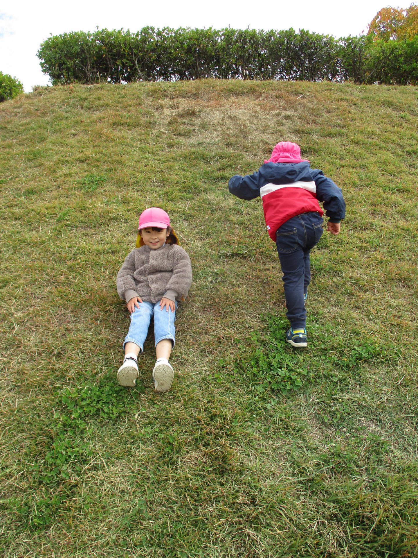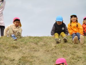松代城跡の芝生広場で、おしりすべり!