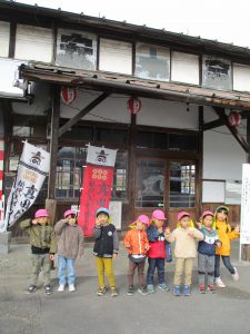 「なんて書いてあるの?」「子鹿のバンビだー」「お昼に聞こえるやつだ!」(毎日正午に、松代地区の有線から子鹿のバンビの曲が流れるのです)