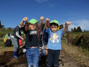 少し小さめのサツマイモでしたがゴロゴロとたくさん採れました。近所の畑ではイノシシに掘られた所が多かったそうです。