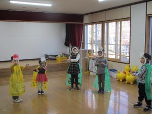 可愛い👻おばけちゃん👻に変身です リズムをしたり、宝さがしゲームをしたり・・・。