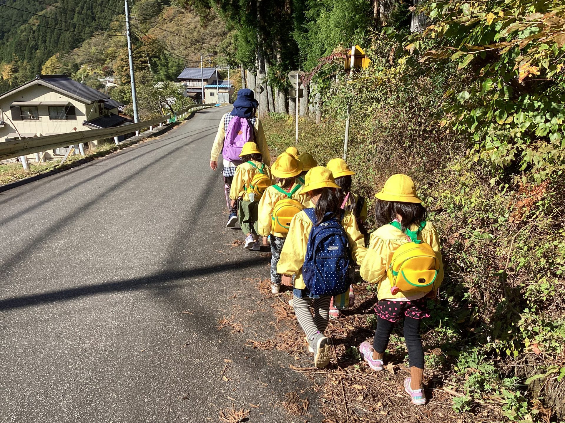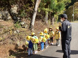 ・「ここ通ったことあるけど、知らなかった」がいっぱいあった今回の遠足。今まで園外に散歩に出かける機会はあったけど、いつもと違って発見や自分が住んでいる根羽について知る事が出来た遠足でした。子ども達には難しい話もあったとは思いますが、根羽村には昔から言い伝えられている素晴らしい場所がたくさんあるという事を、頭のどこかで覚えていてくれたら良いと思います。