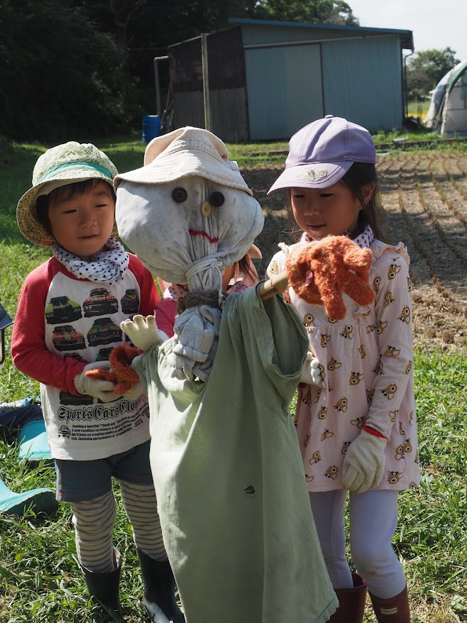 子どもたち、保育士、そして保護者の皆さん、そしてかかし。