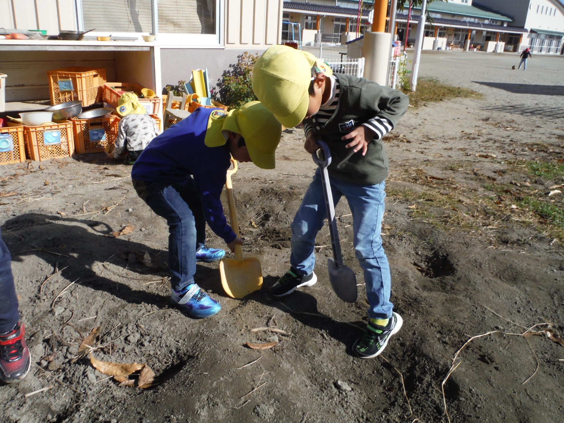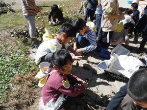 さつまいも掘りの活動は一日だけのことでしたが、翌日には「先生見てて〜」
