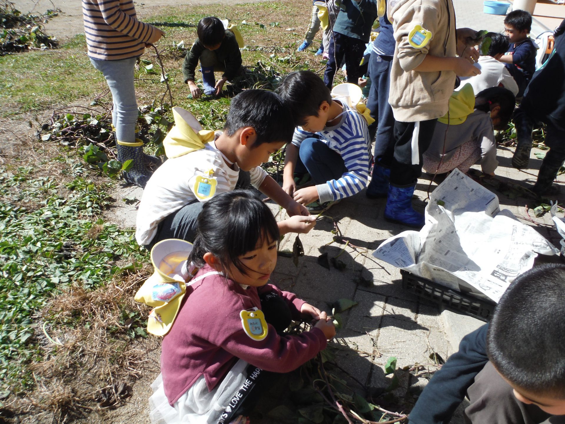 みんなで苗を植え、水やりをしたり草取りをして生長を見守ってきたさつまいも。