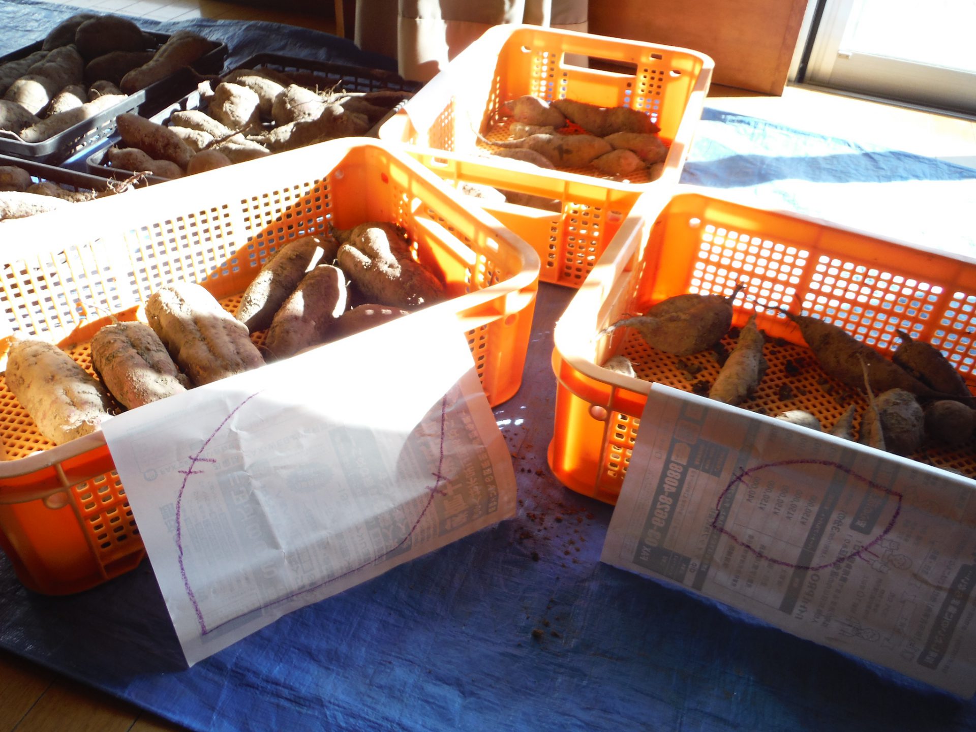収穫したさつまいもは「小さい・中くらい・大きい」どれだと思う?大きさで分けてみました。