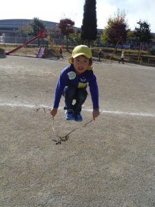 さつまいもの弦で縄跳び遊び。
