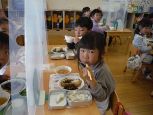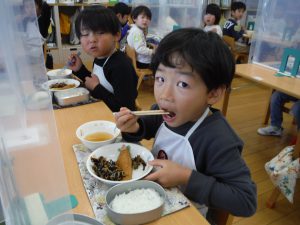 「いっぱい食べたい」「少しにしてください」子どもたちの反応は様々でしたが「パクリ!」
