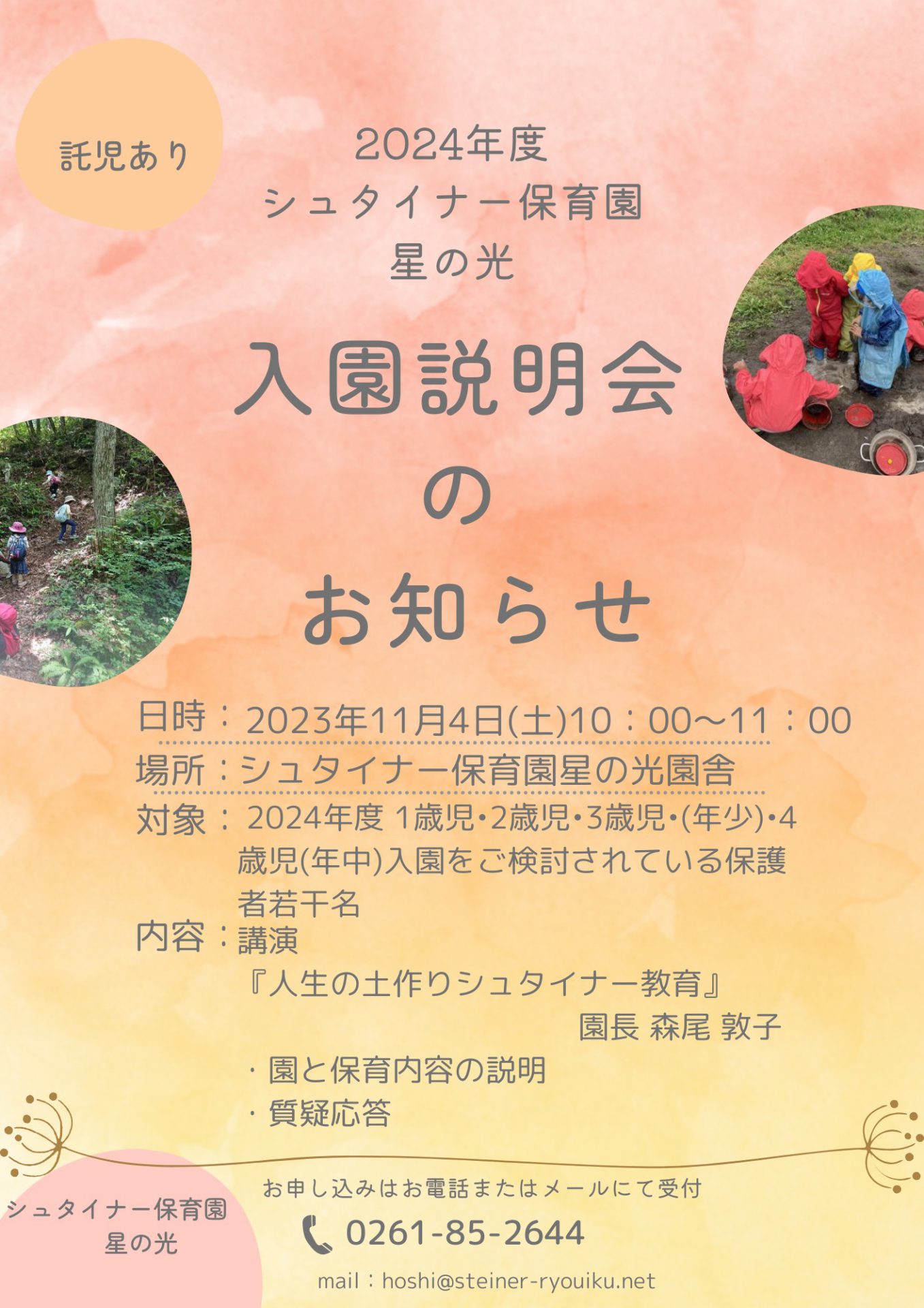 内容:・講演『人生の土作りシュタイナー教育』 園長 森尾敦子
