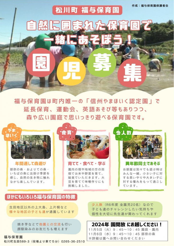 入園申込の詳細及び入園基準等の詳細は松川町HPをご確認ください。
