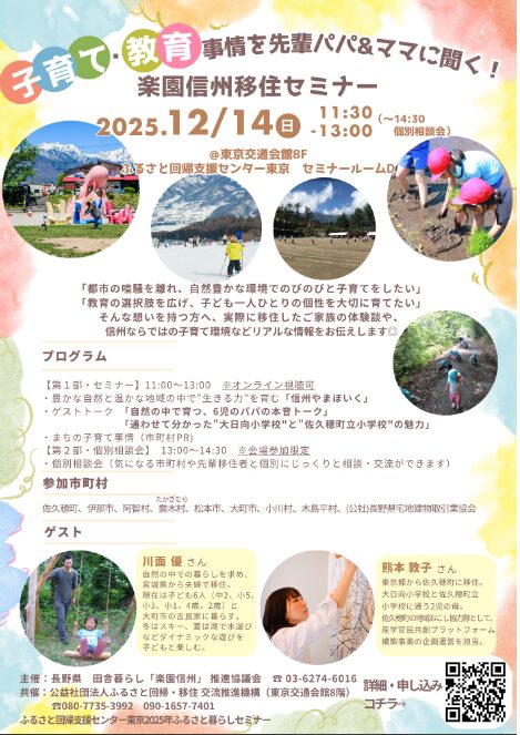 長野県の子育て・教育事情をご紹介する移住セミナーを開催します!