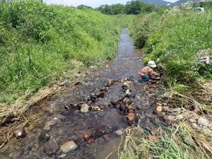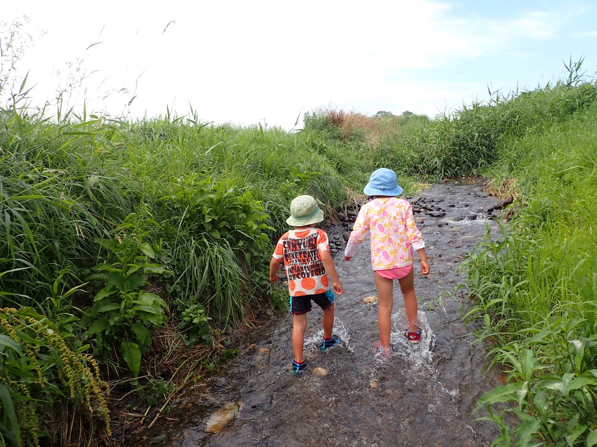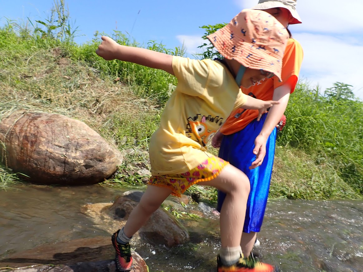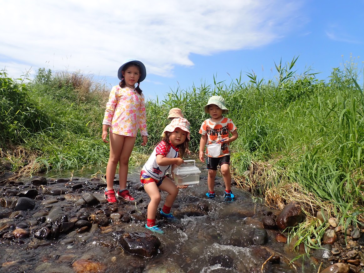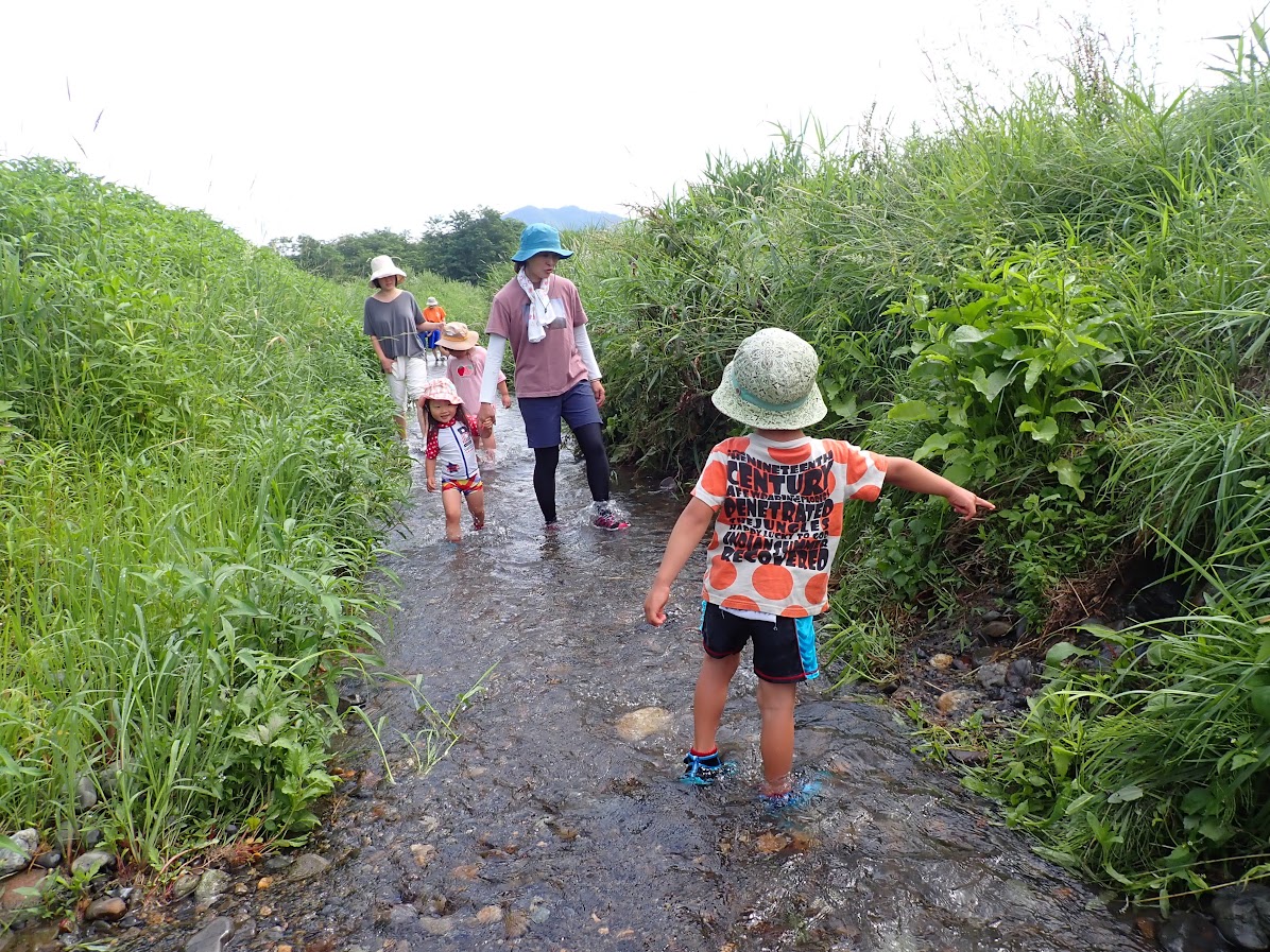 人の手で、農薬を使わず、面倒な事と感じることを丁寧に行って、食べる事へつなげることの労力は想像を越えます。暑い日も年長児が中心となって田の草取りをおこないます。(年中少児はもっぱら田んぼの中の水生生物に夢中ですが・・・(笑))
