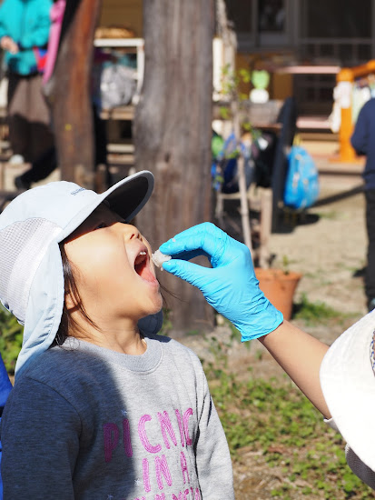 もち米が柔らかくなったかどうか子どもたちと試食をして確認しました。