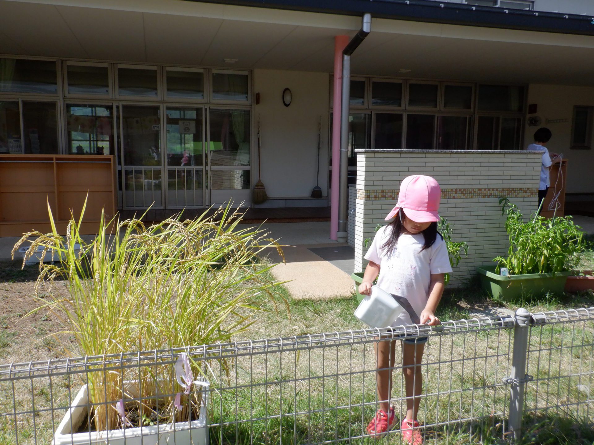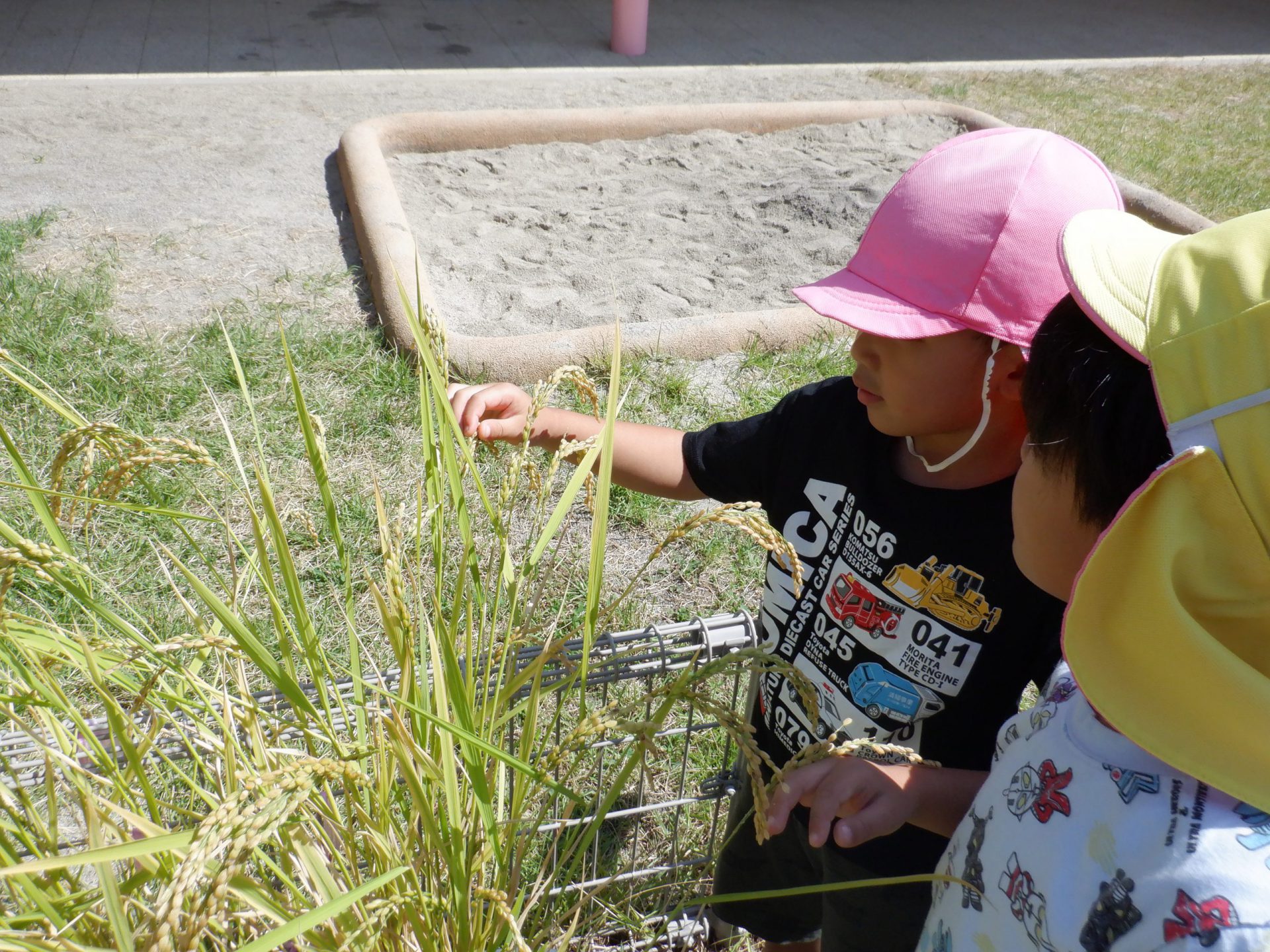 ・畑も園の敷地内にあるので、学年毎様々な作物を育て、収穫し、給食で提供してもらって味わうなどの食育活動を行っている。
