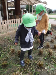 自然を感じながら五感を育て意欲的に遊び、友だちの大切さ、命の大切さに気付いてほしいと願い活動しています。地域の方の協力を得、畑活動、お茶会、お話会の活動も行っています。