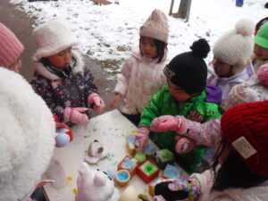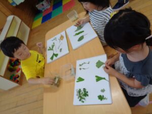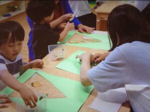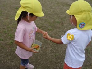 自然を感じながら五感を育て意欲的に遊び、友だちの大切さ、命の大切さに気付いてほしいと願い活動しています。地域の方の協力を得、畑活動、お茶会、お話会の活動も行っています。
