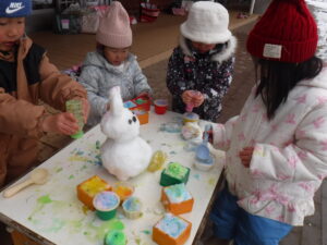 はぜ掛けしたおこちゃんの下にもぐった子ども達は、「おこちゃんのお家みた〜い」と喜んでいました。