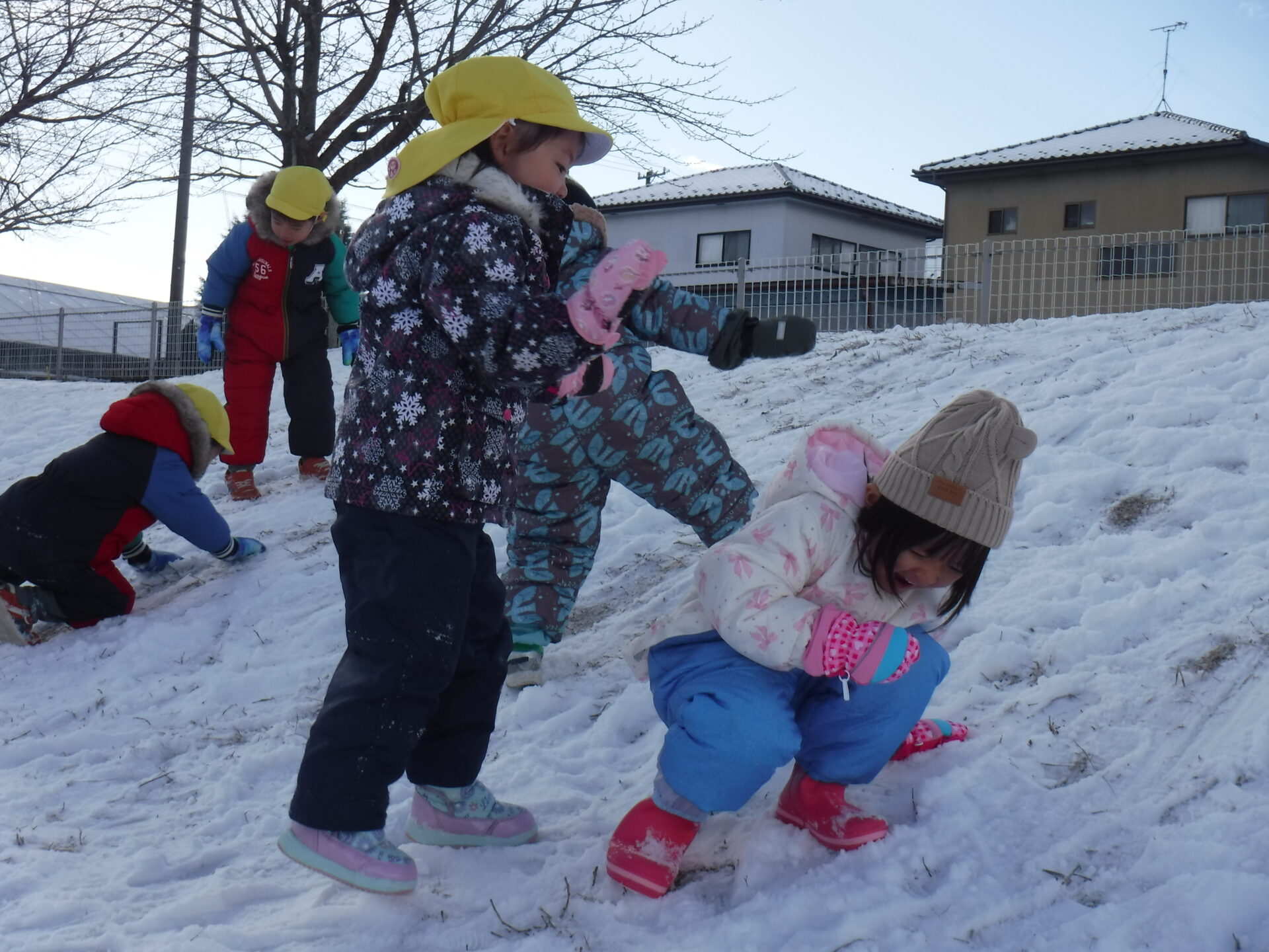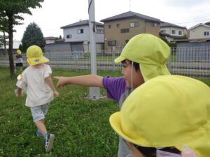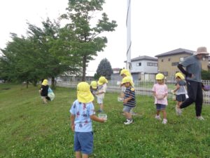 園内にある木(桑、桜、すぐり等)のまわり、小高い場所にある土手で、自然に触れた遊び(草花摘み、虫取り)などの遊びも日常的に行うことができます。