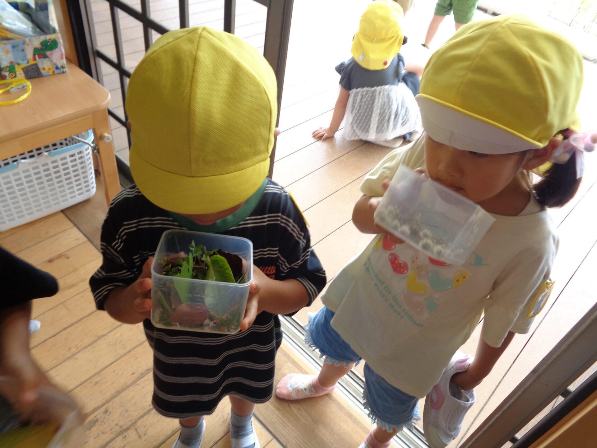 「脚が長い!」「わっ飛んでった〜!」と生き物たちとの出会いも楽しみました。