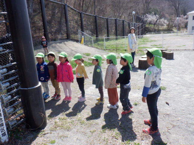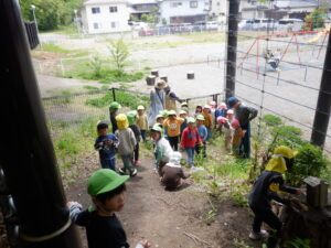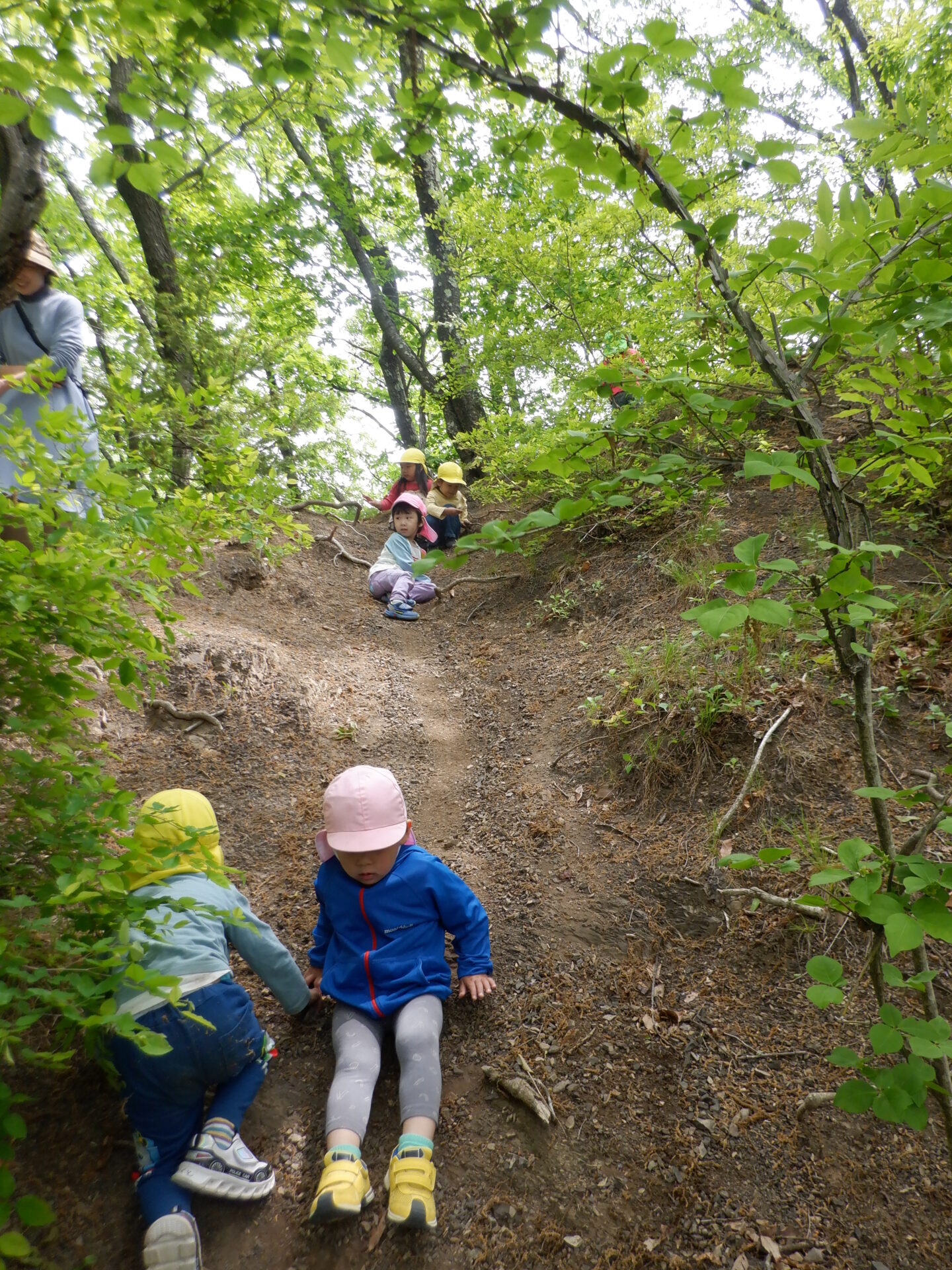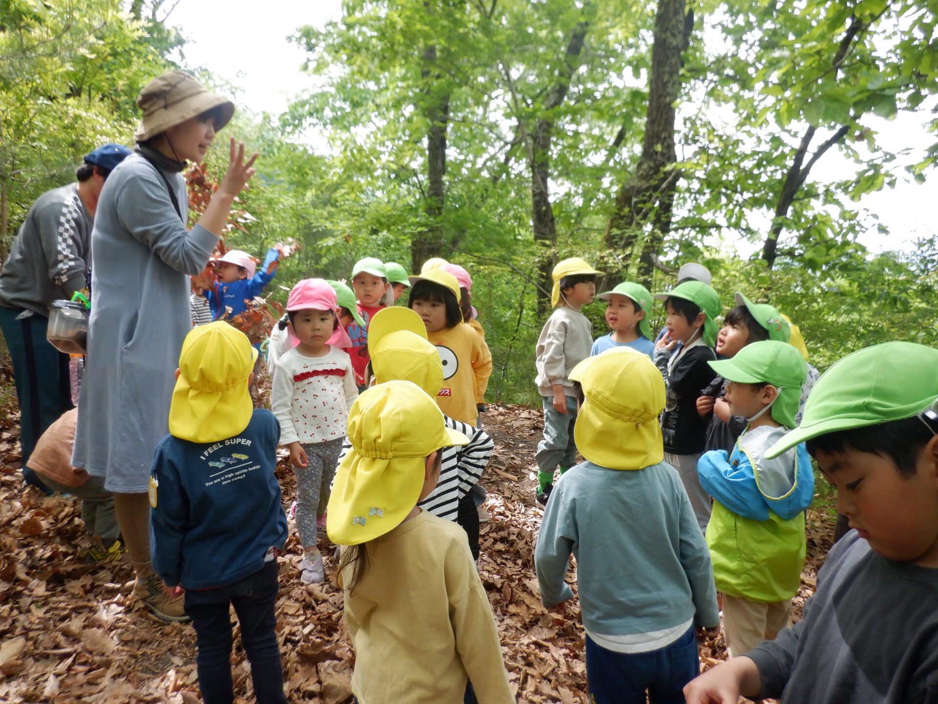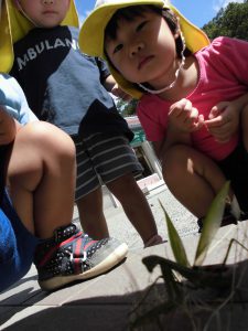 どんぐりがたくさん落ちいている上川手の山。「どんぐりたくさん拾いたいな!」と、わくわくしながら山に入っていきました。