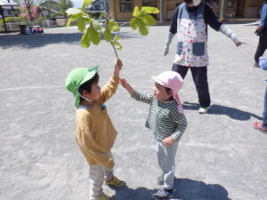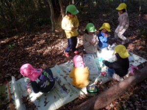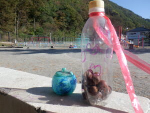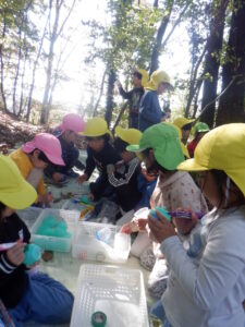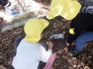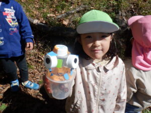 どんぐりを入れて「できたー!」と再び山遊びを楽しみました。