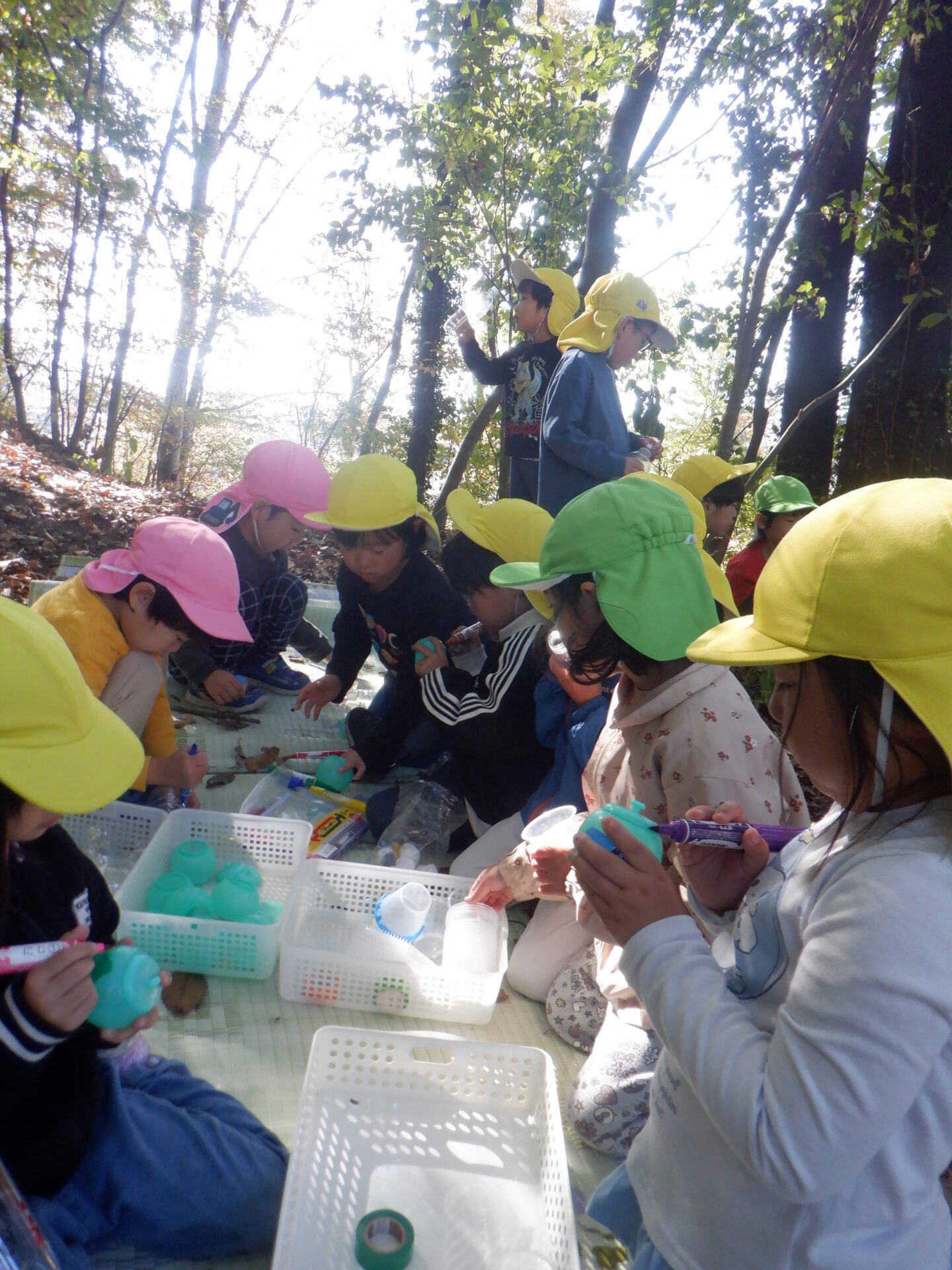 「山の中でかくの楽しい!」「かわいいどんぐり入れにしよう」