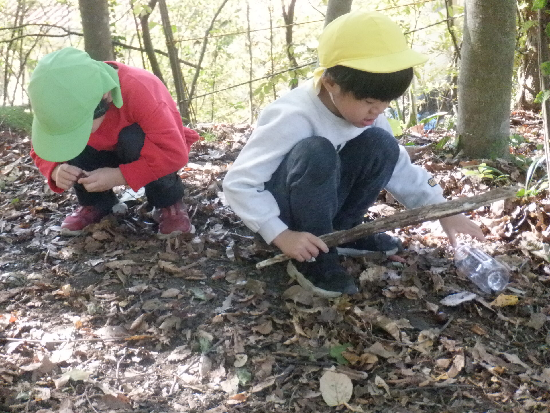 みんな、夢中になってどんぐりを探しています。