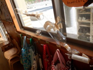 袋だけではなく、いろいろな空き容器があるのを見つけると、早速”どんぐりの入れ物作り”が始まりました。