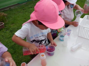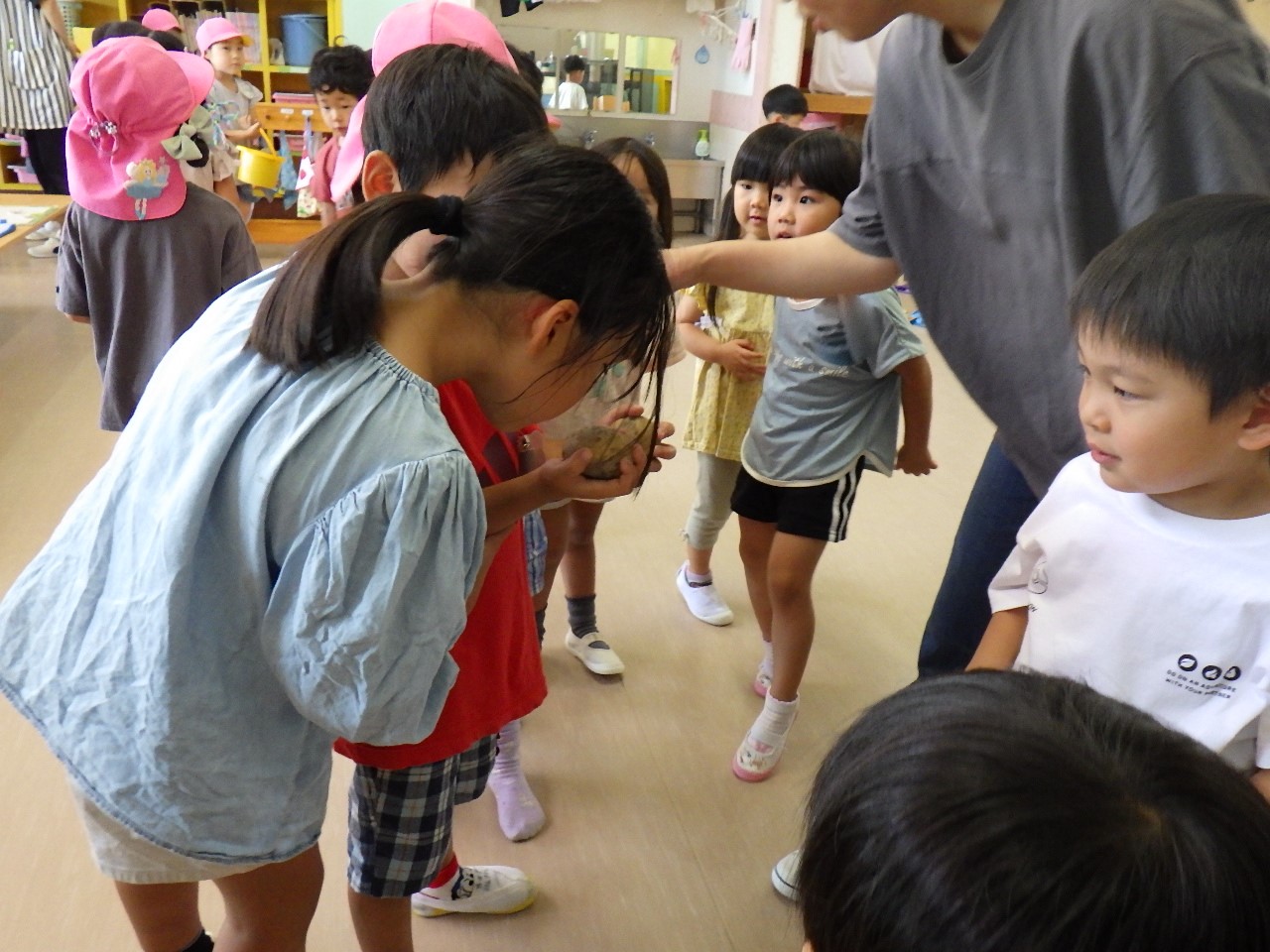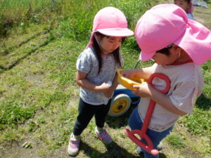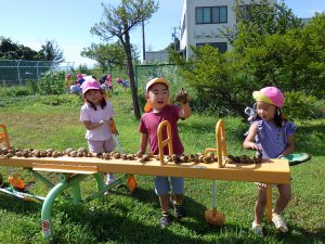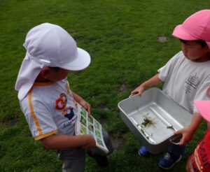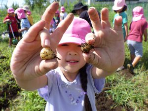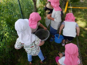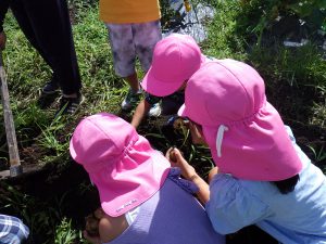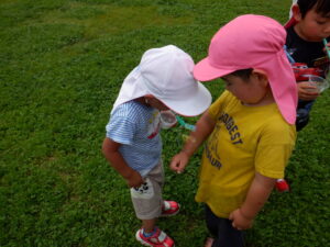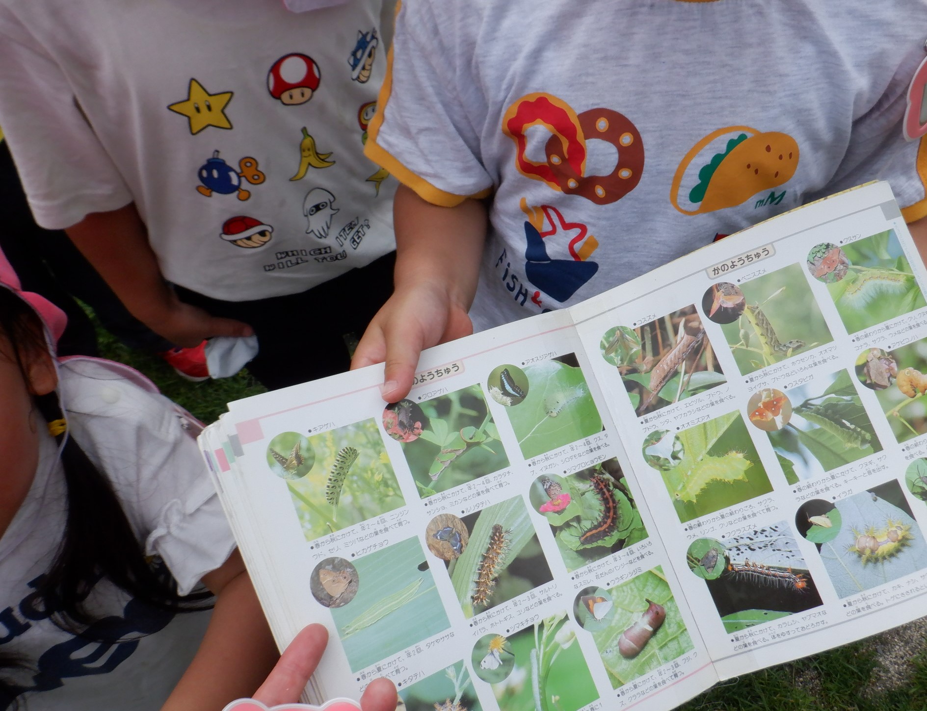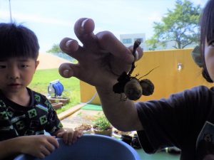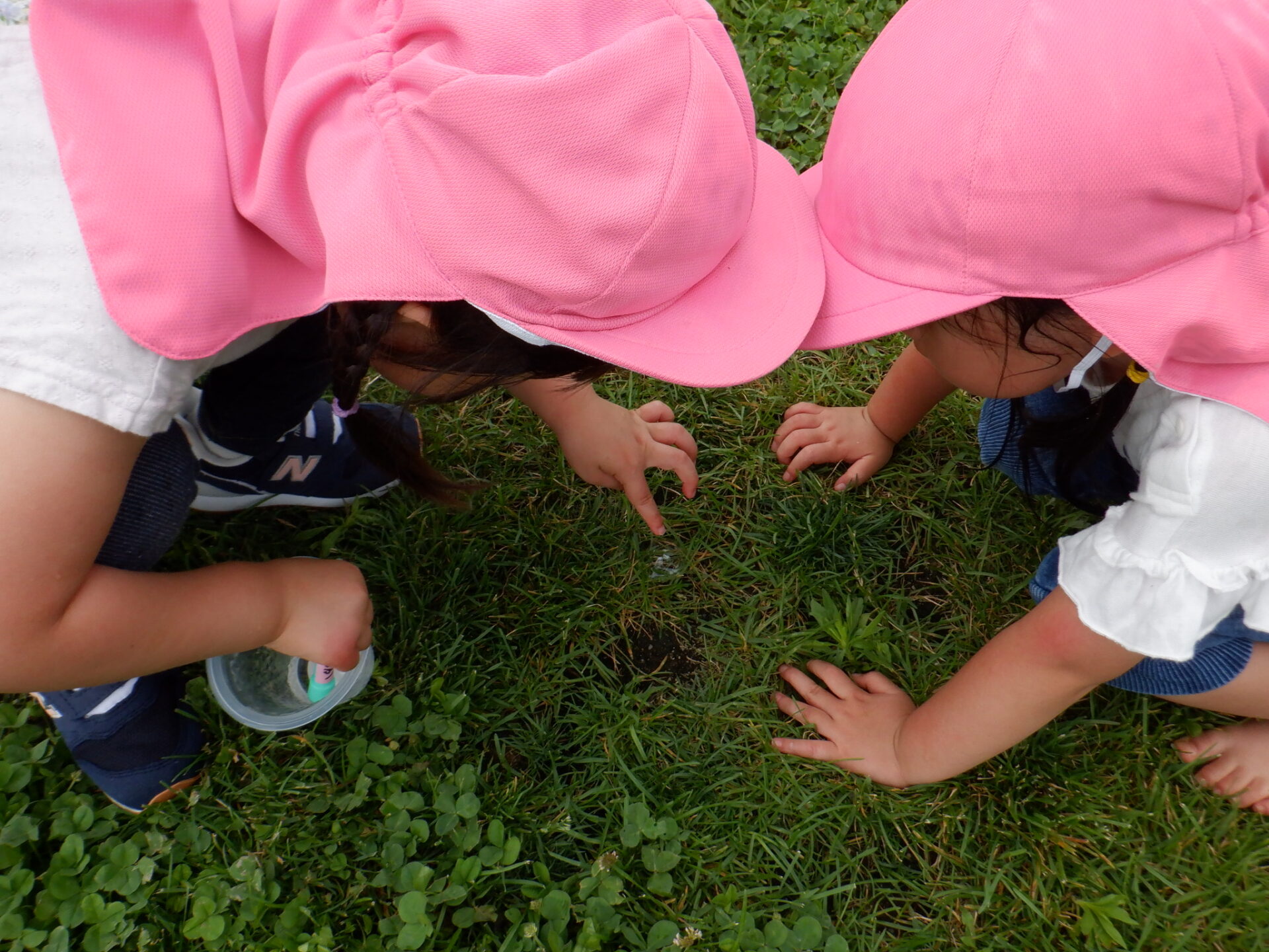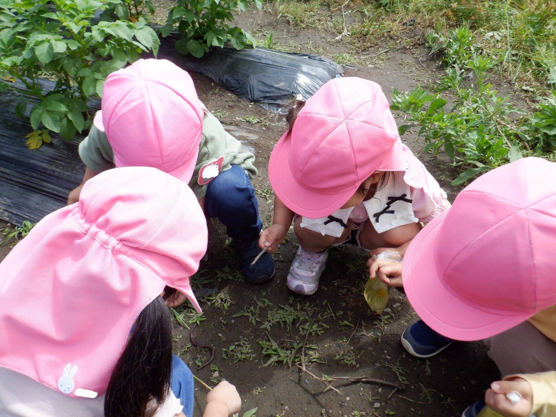 春から虫探しに夢中だった子どもたち。虫の扱い方にはまだまだ未熟さがありますが、優しく接することができるよう、保育者も一緒に関わり虫との触れ合いを大切にしていきたいと思います。