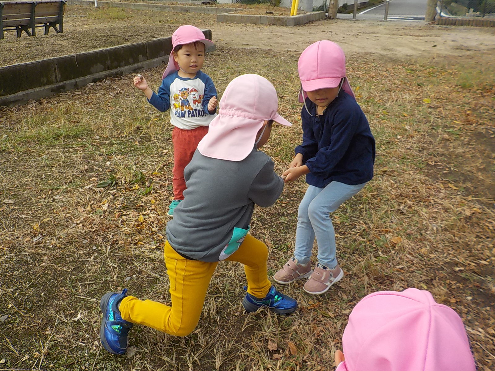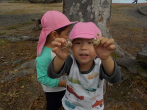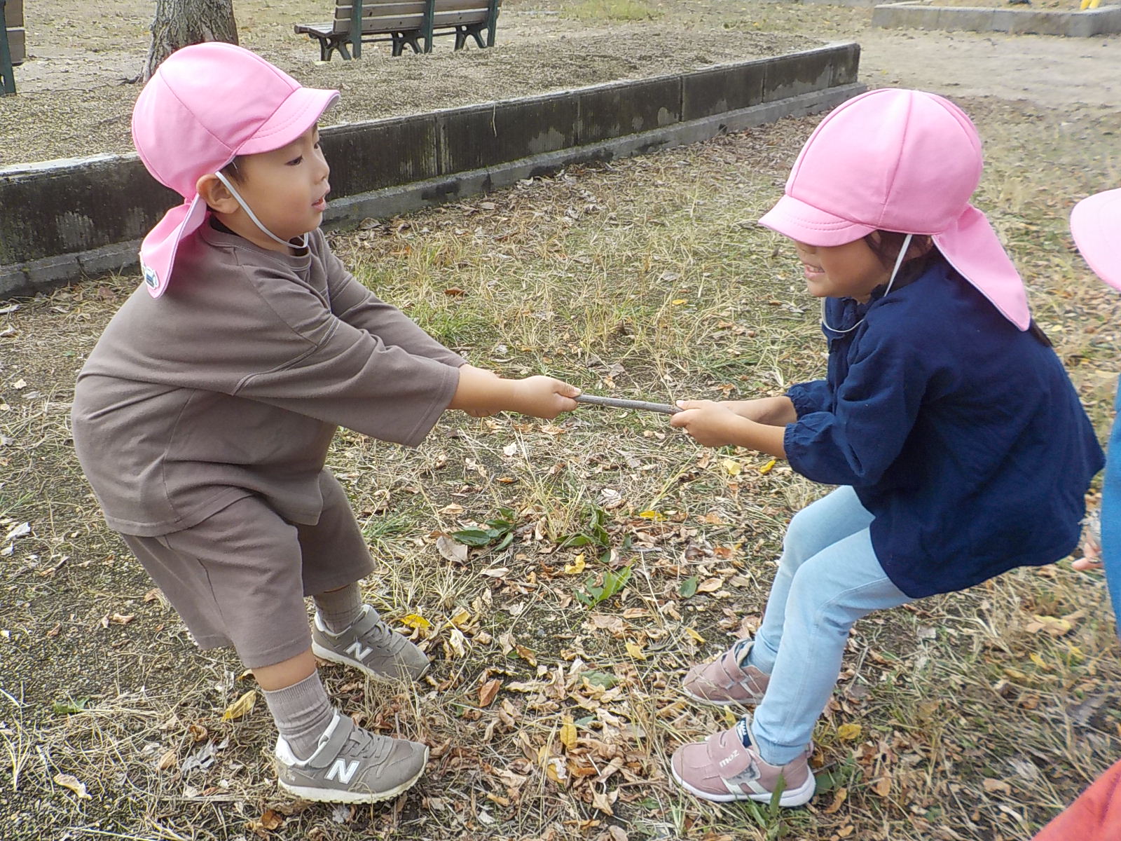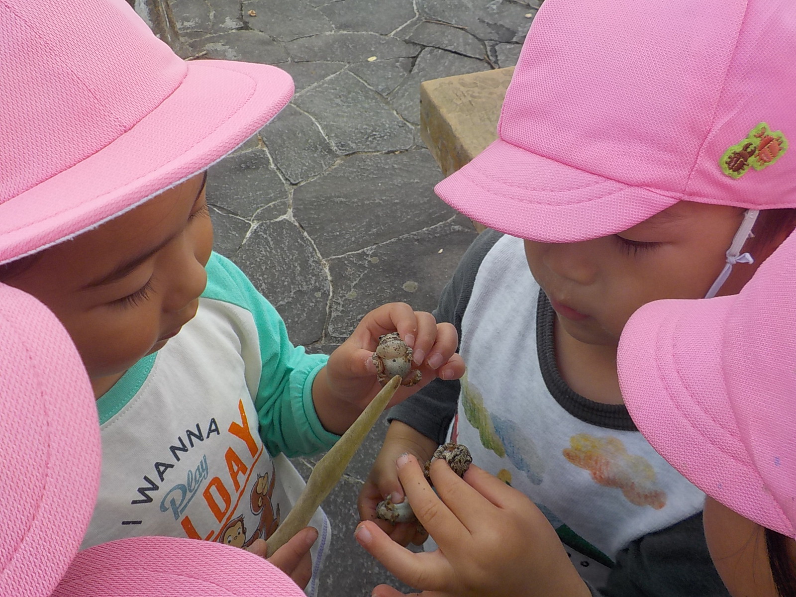 ・友だちのしていることに興味や関心をもち、一緒に見たり遊んだりしながら、色々なことに気づき、おもしろさや不思議さを共感してほしい‥そんなことを願いながら保育をしています。