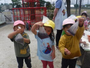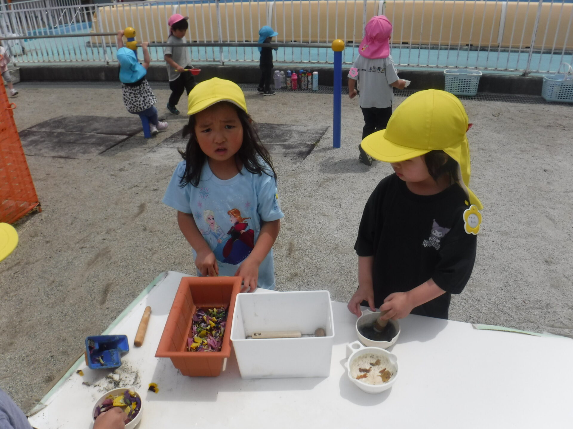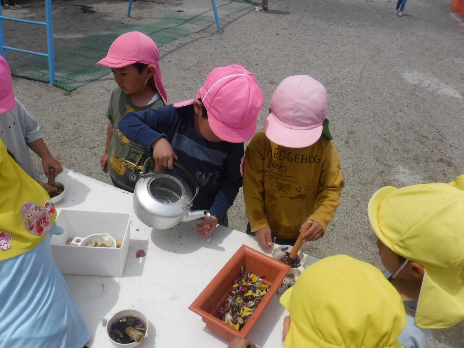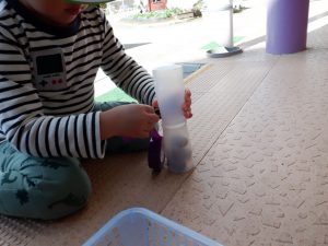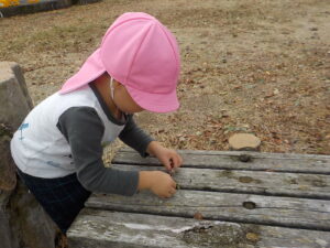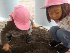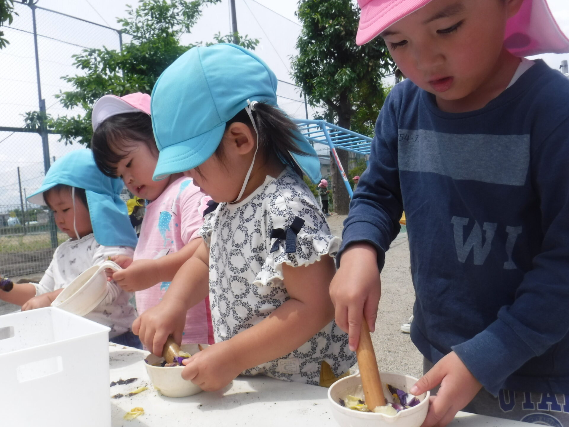 ・友だちのしていることに興味や関心をもち、一緒に見たり遊んだりしながら、色々なことに気づき、おもしろさや不思議さを共感してほしい‥そんなことを願いながら保育をしています。