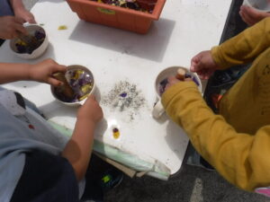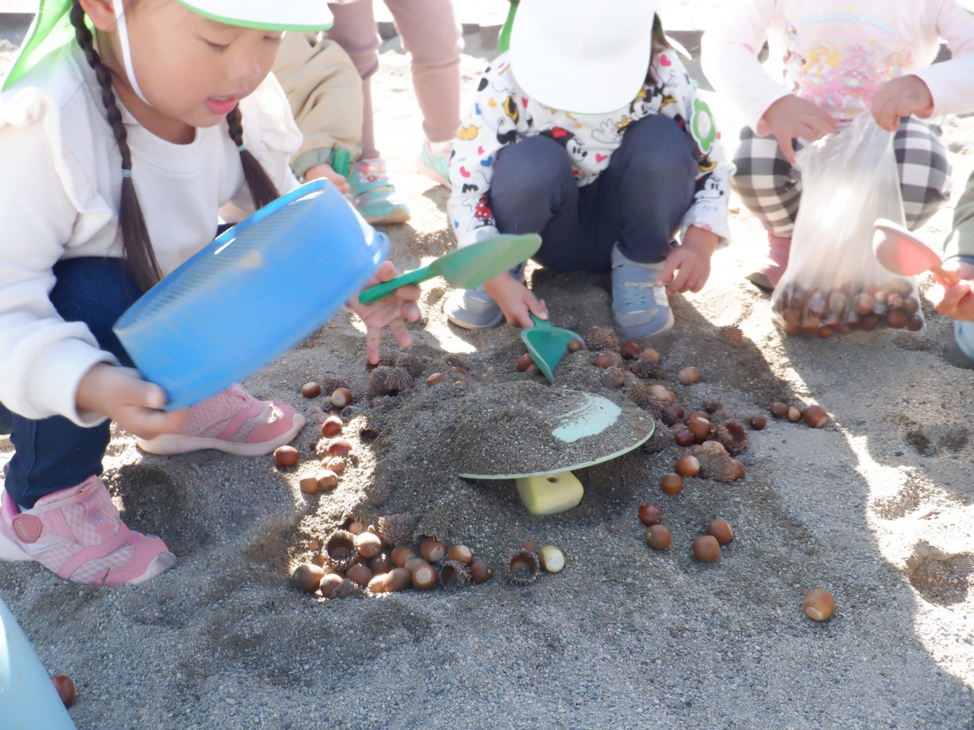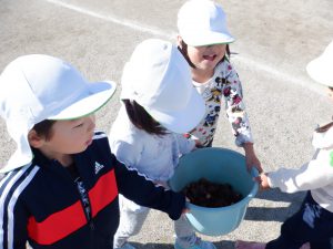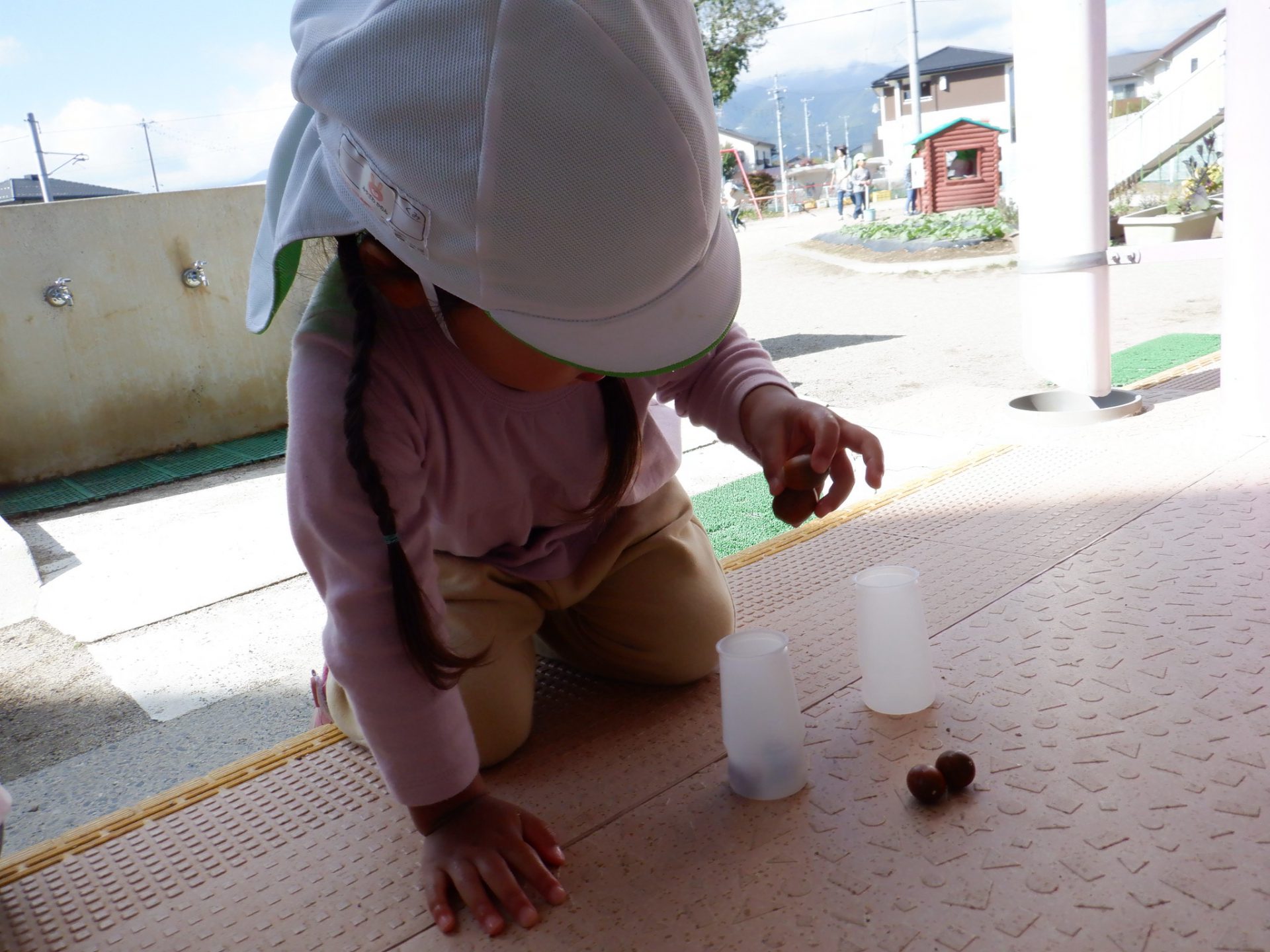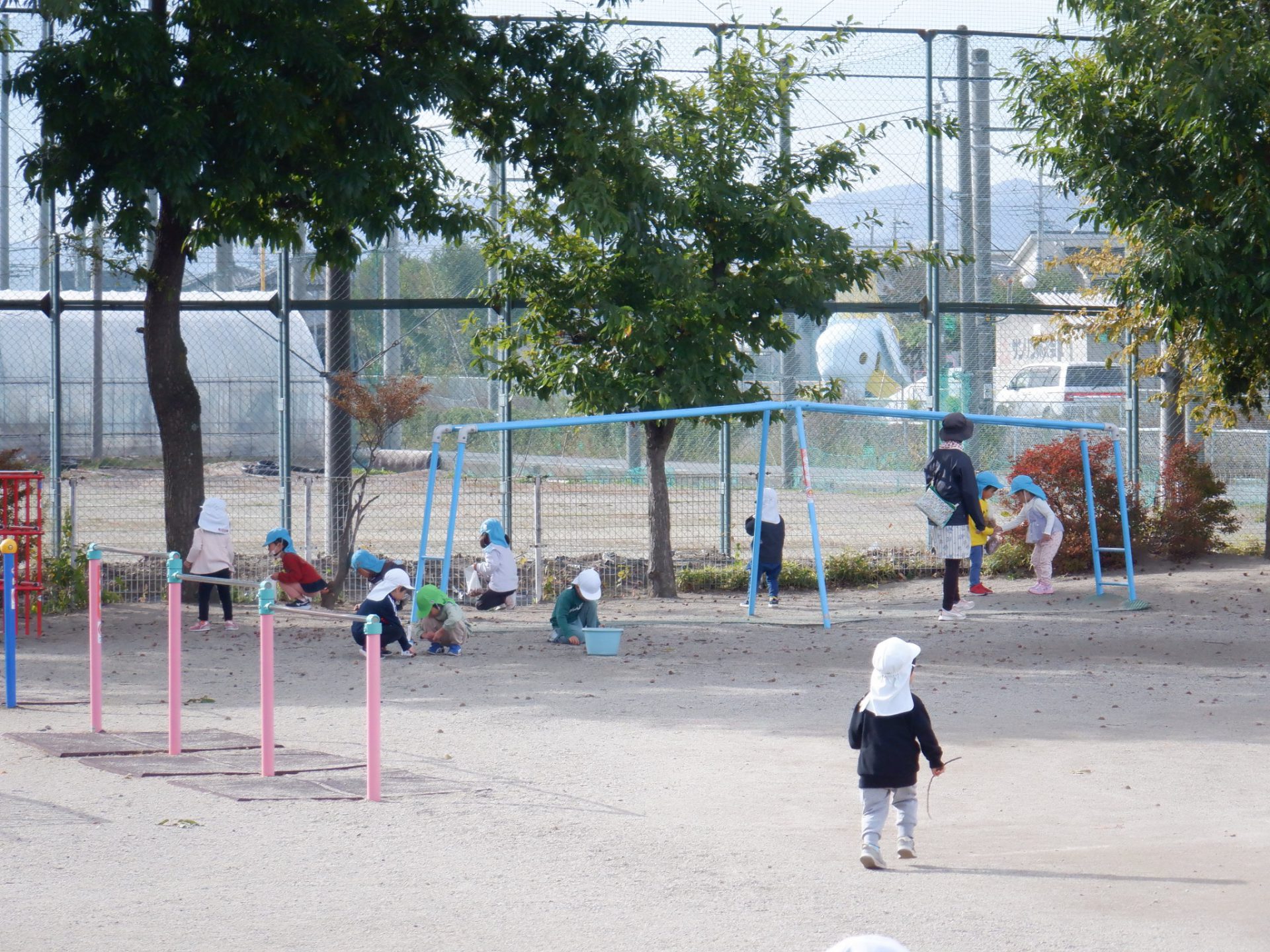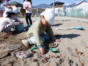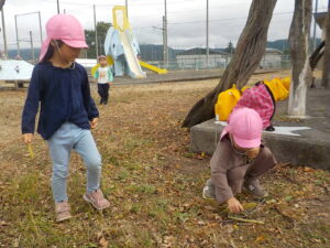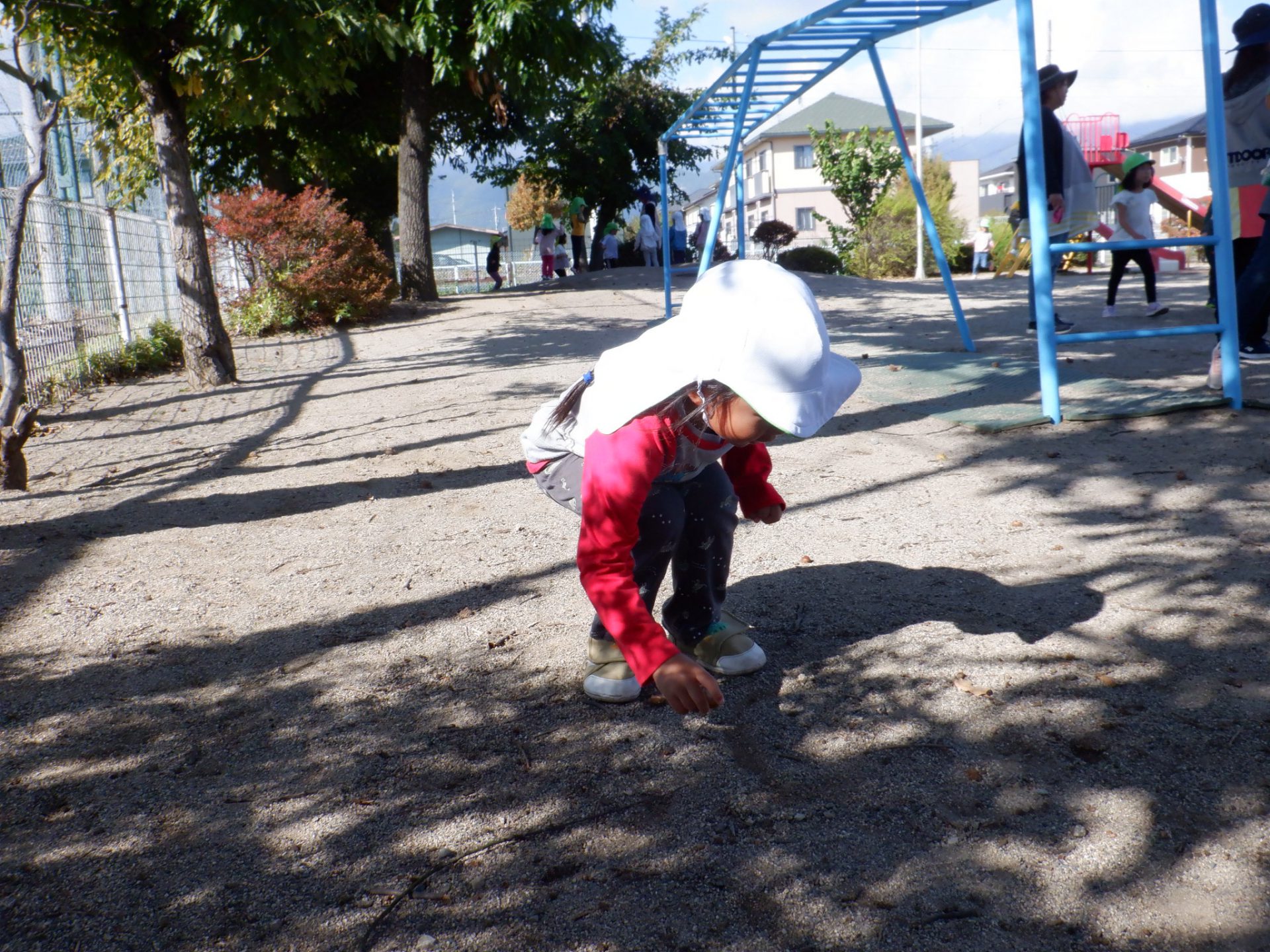 隣接している南安曇農業高校とは、交流を通して栽培している花や野菜、普段触れることが少ない動物の姿を見るなど貴重な経験をしています。園外保育では近くにある公園や神社などにも行き、草花に触れたり木の実を集めて遊んだりして地域の自然や風景を感じることも大切にしています。