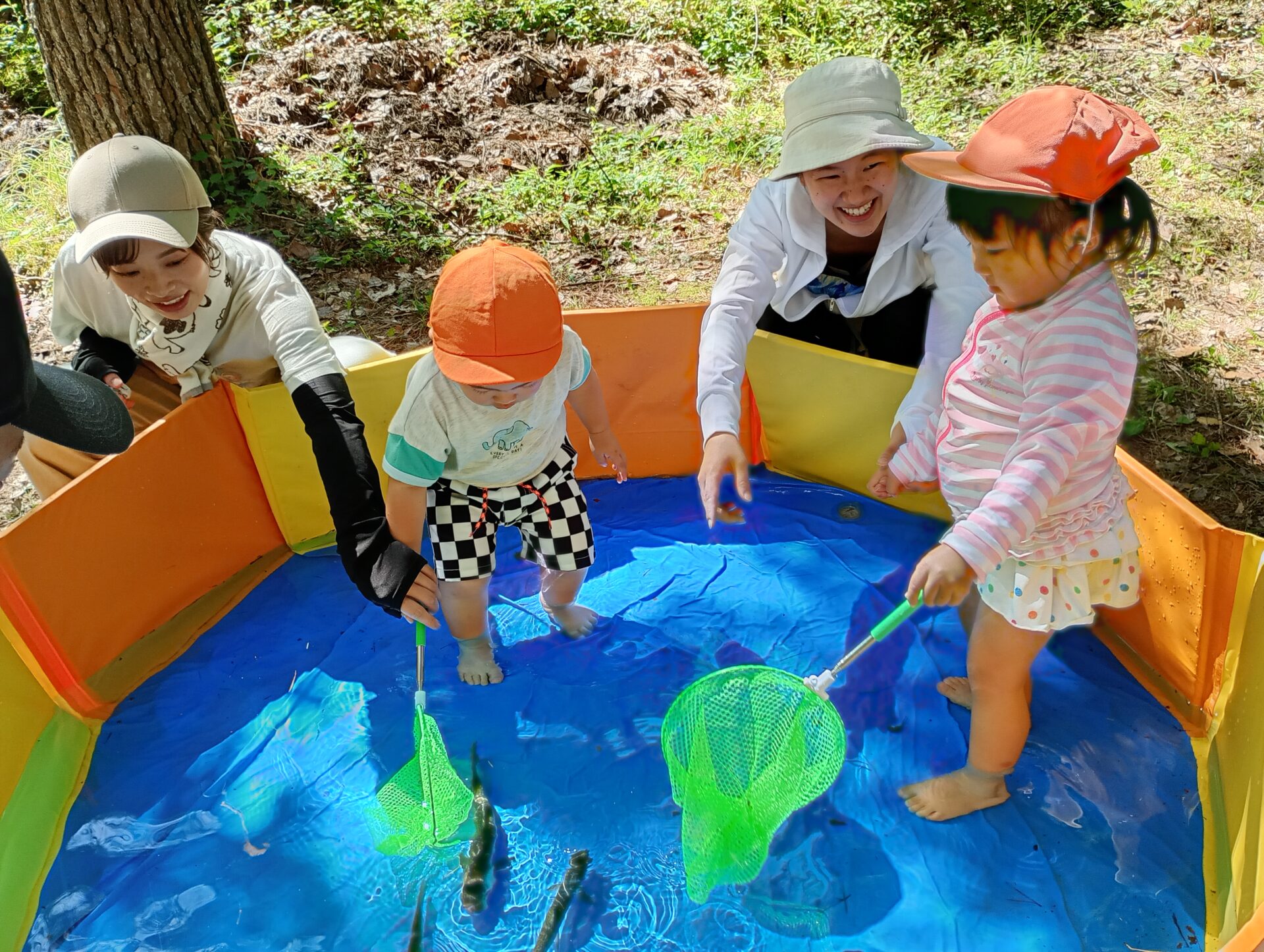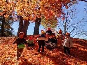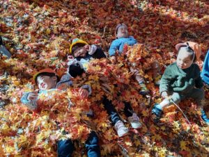 散歩や戸外活動を始め、生の体験を豊かにすること、地域の人たちと世代を超えたかかわりの機会を持つこと、異年齢編成のクラスを生活の基盤として、さまざまな場面で適切な形態を取り入れることを重点活動としています。